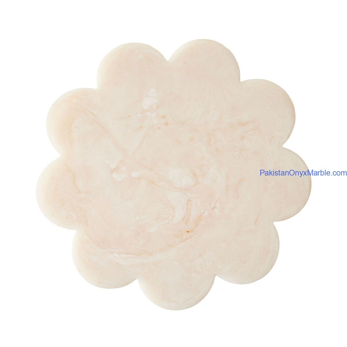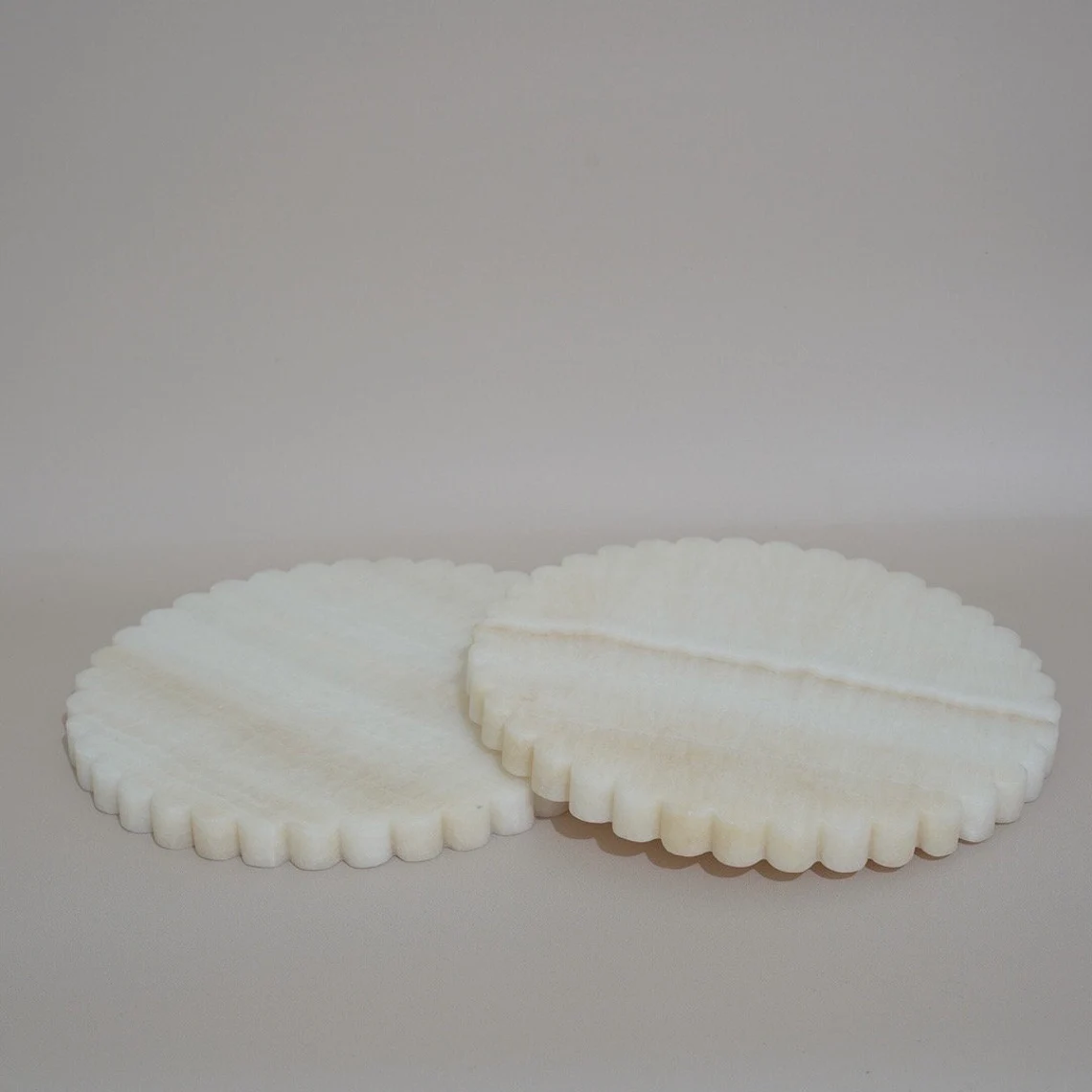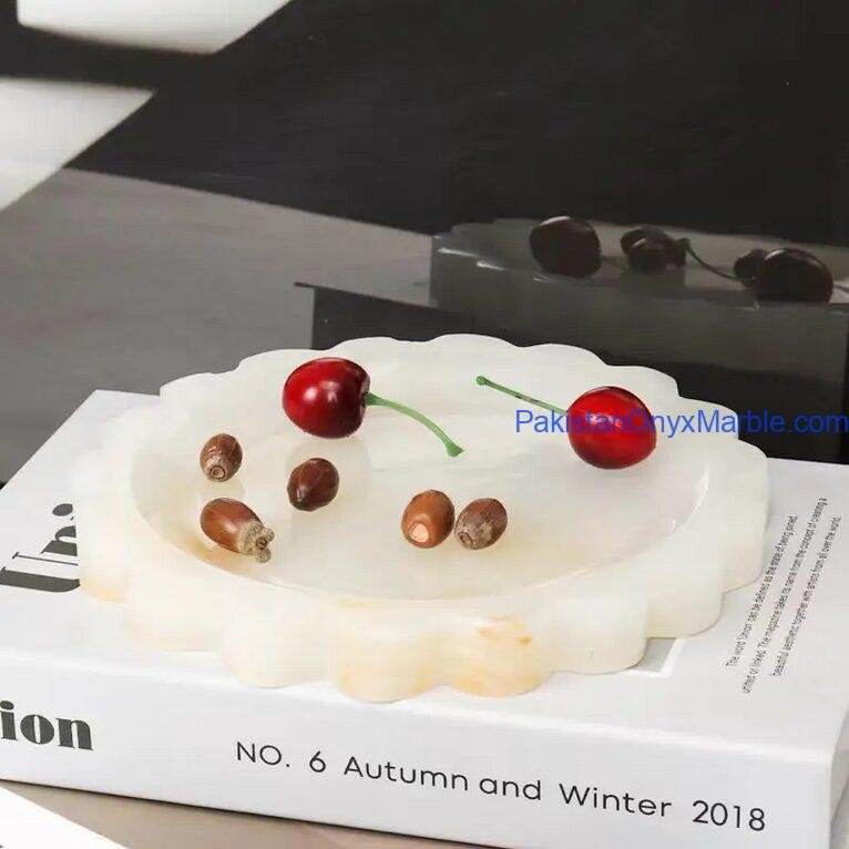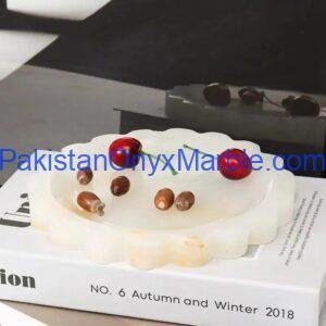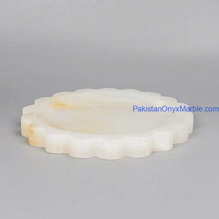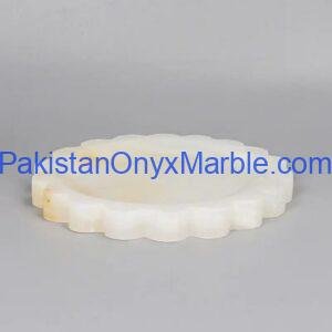 Afghan Snow White Onyx Serving Trays – Scalloped Round Design