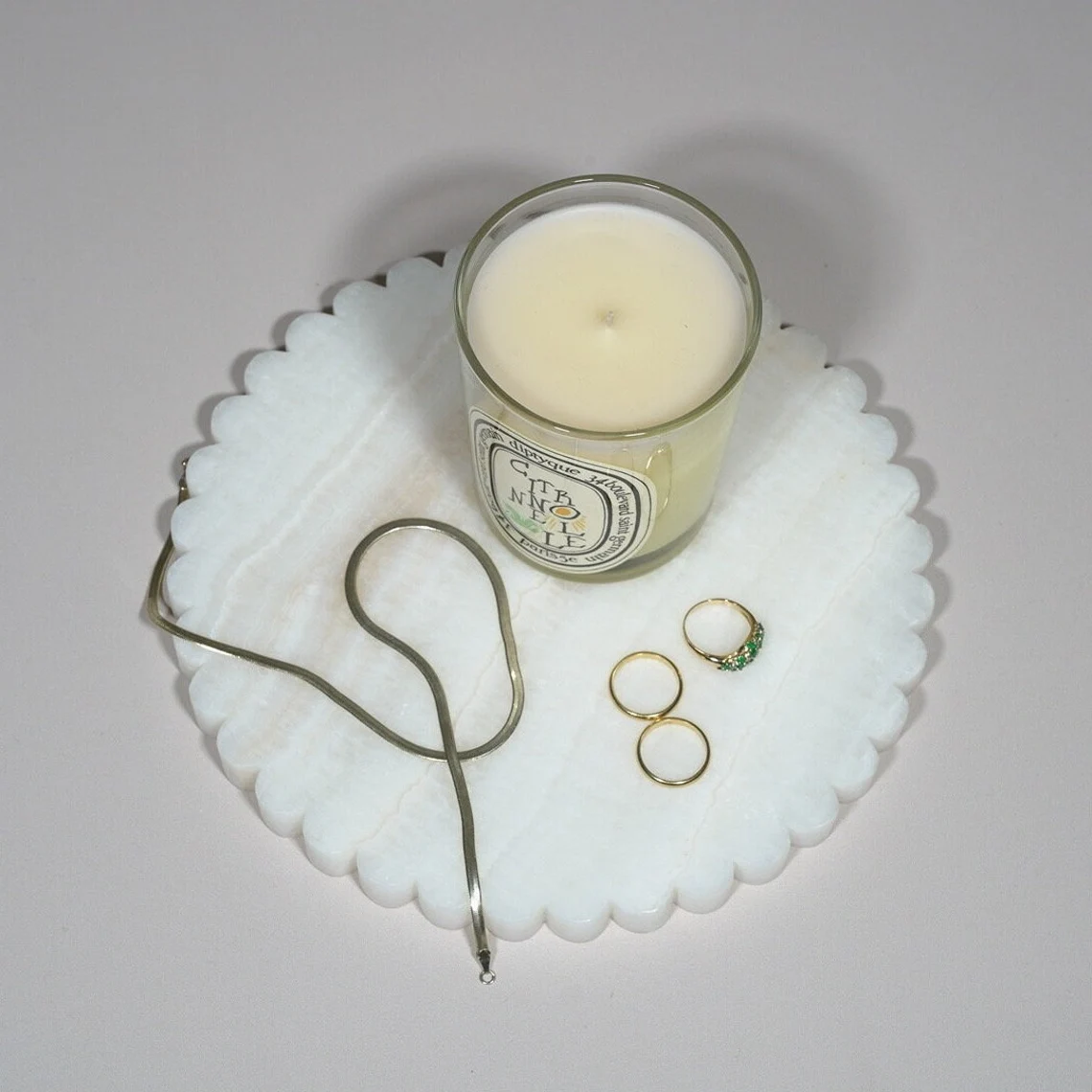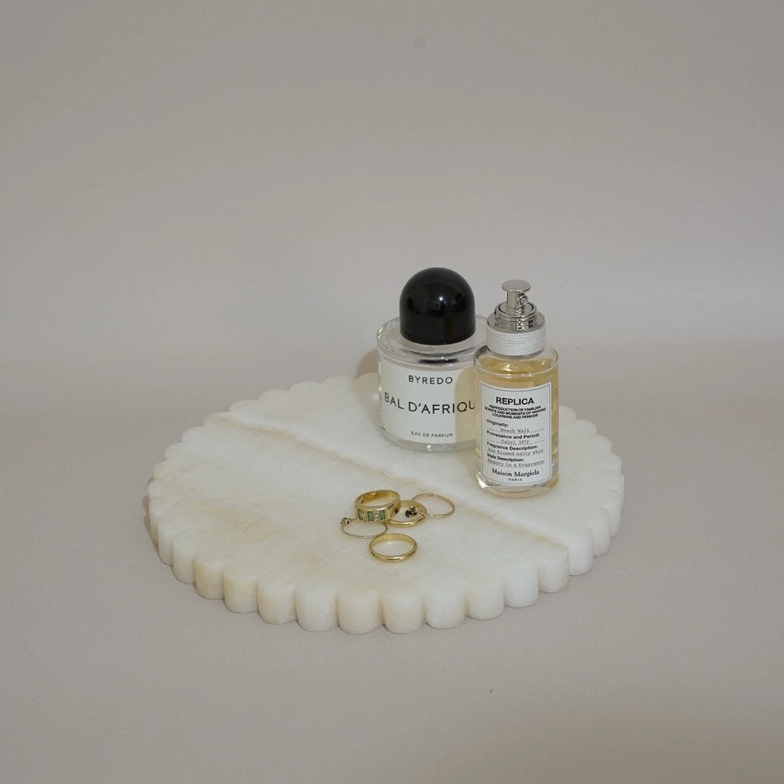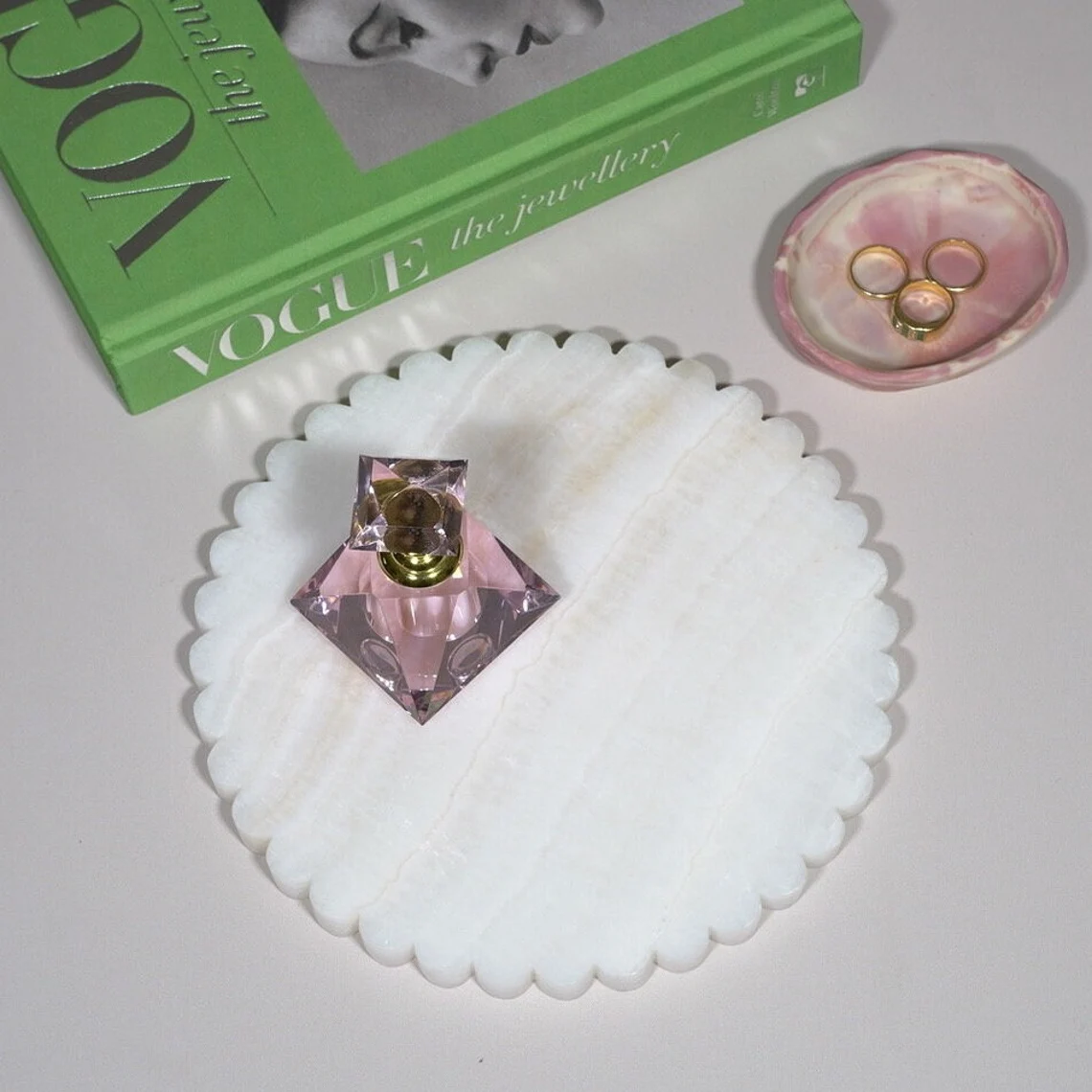 Afghan Snow White Onyx Serving Trays – Scalloped Round Design