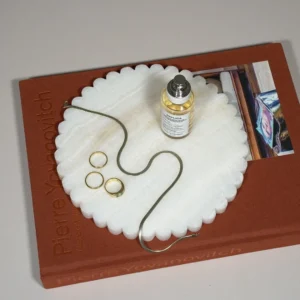 Pakistan Onyx Marble manufactures premium Afghan Snow White Onyx Scalloped Round Trays, carved from Grade-A white onyx sourced directly from Afghanistan. Each tray is shaped from a single solid block and features a perfect round profile with elegantly carved scalloped edges, creating a refined, decorative, and high-end aesthetic. The pure white tone, polished finish, and wavy perimeter design make this tray ideal for luxury home décor, vanity setups, serving applications, and boutique retail environments.