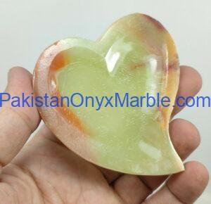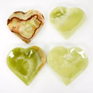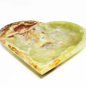 Pakistan Onyx Marble produces premium Green Onyx Heart Trays made from Grade-A Green Onyx sourced directly from Pakistan. Each tray is carved from a single solid block, ensuring strength, clean edges, and a superior polished finish. The rich green tones, natural veining, and semi-translucent qualities of Green Onyx give the heart-shaped silhouette a luxurious, romantic, and artistic appeal—ideal for décor, serving, vanity displays, and boutique merchandising.