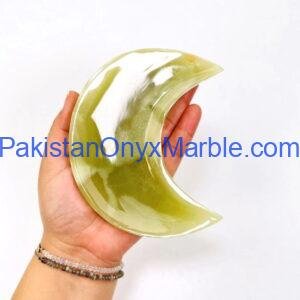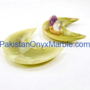 Pakistan Onyx Marble produces premium Green Onyx Moon Trays, expertly carved from Grade-A Green Onyx sourced directly from Pakistan. Each tray is shaped from a single solid block, preserving the stone’s deep green tones, rich veining, and natural translucency. The elegant crescent moon silhouette adds a sculptural, artistic touch—perfect for luxury décor, serving setups, vanity styling, spiritual décor, and boutique retail displays.