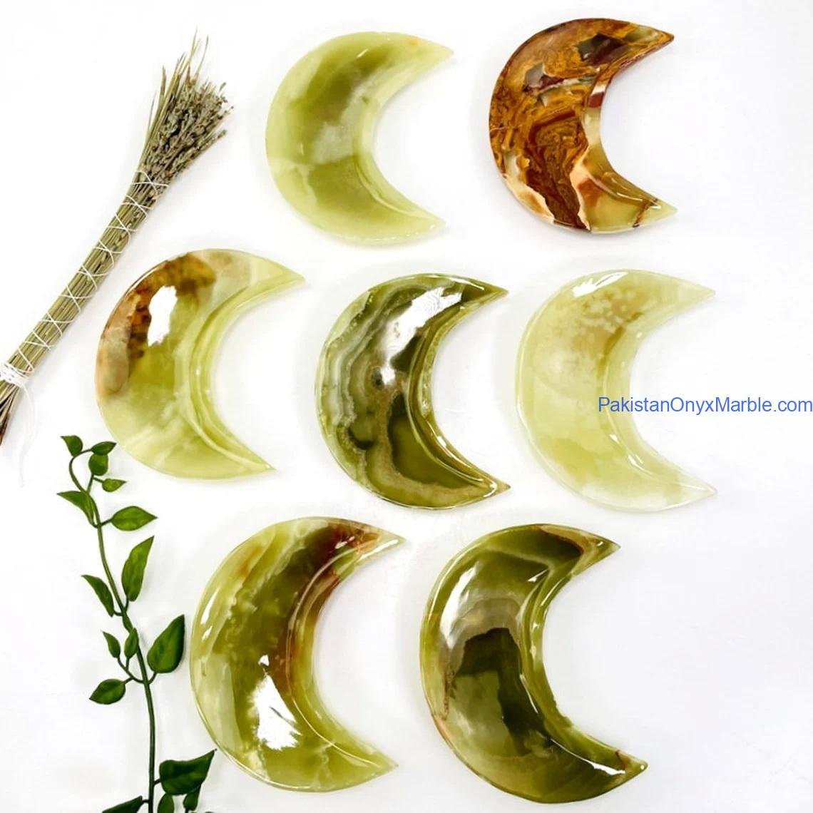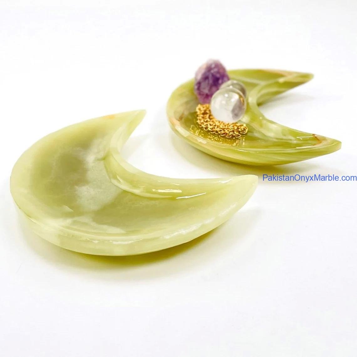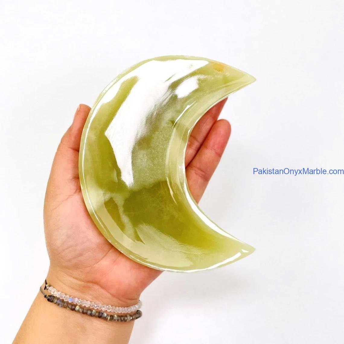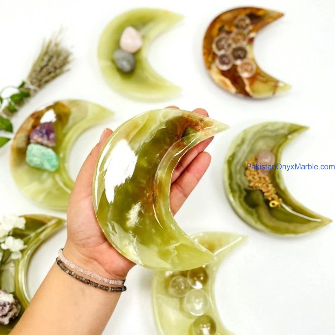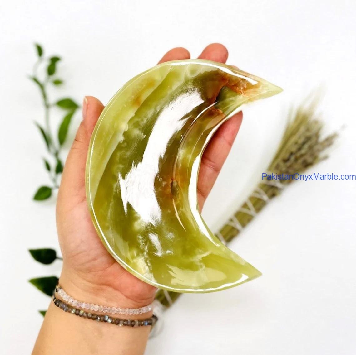 Pakistan Onyx Marble produces premium Green Onyx Moon Trays, expertly carved from Grade-A Green Onyx sourced directly from Pakistan. Each tray is shaped from a single solid block, preserving the stone’s deep green tones, rich veining, and natural translucency. The elegant crescent moon silhouette adds a sculptural, artistic touch—perfect for luxury décor, serving setups, vanity styling, spiritual décor, and boutique retail displays.