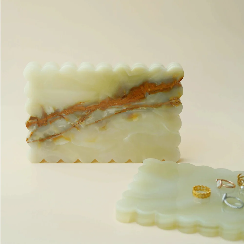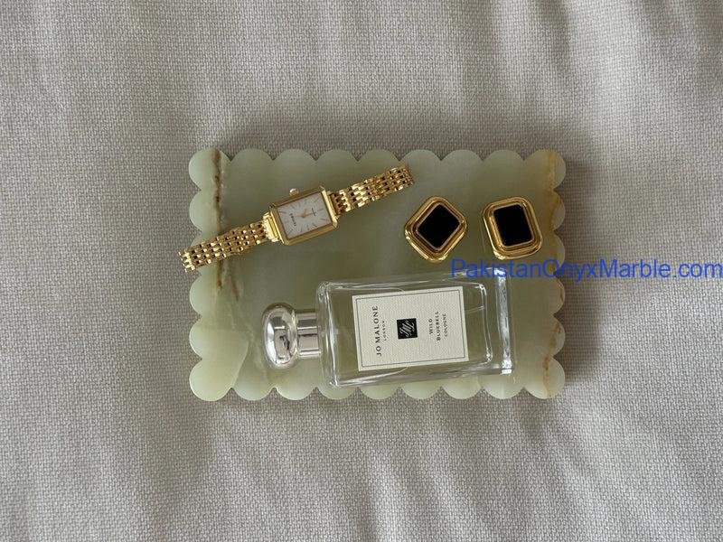 Green Onyx Serving Trays – Scalloped Rectangle Design