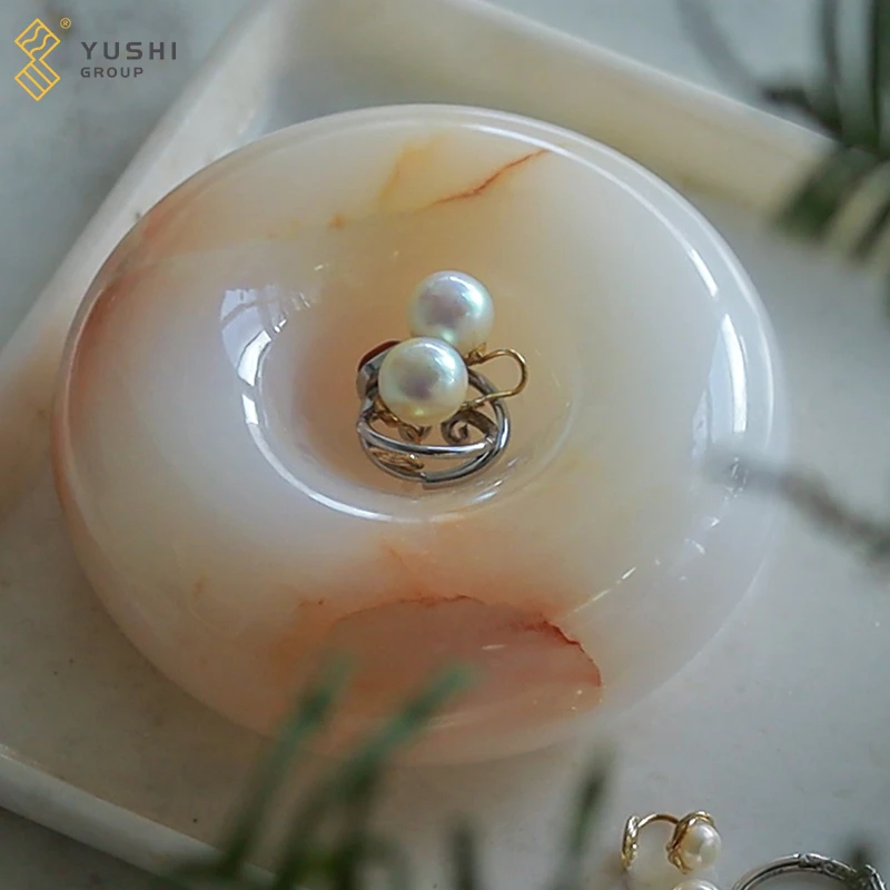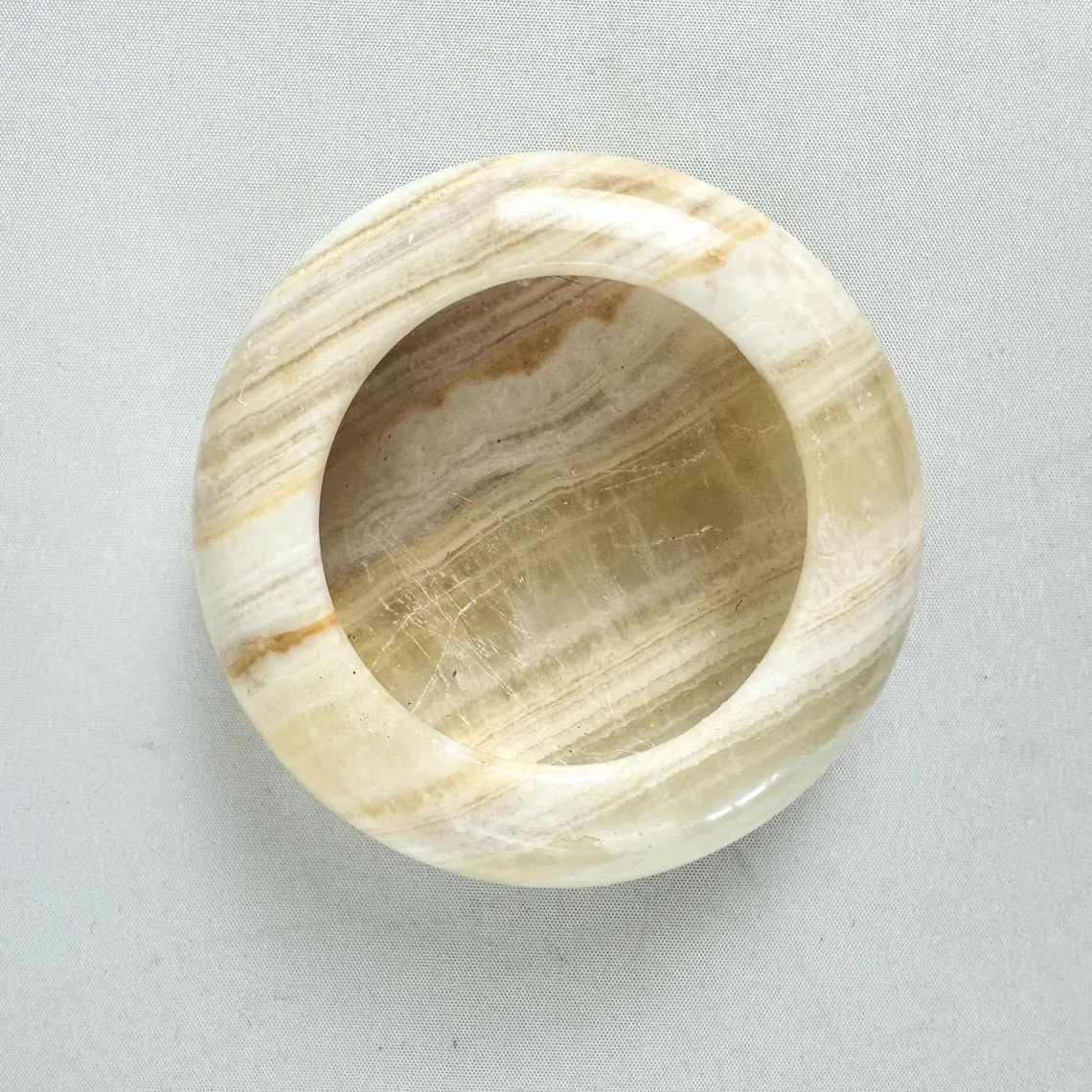 Pakistan Onyx Marble produces premium Light Green Onyx Donut Trays, carved from Grade-A Light Green Onyx sourced directly from Pakistan. Each tray is crafted from a single solid block, featuring a rounded outer ring with a recessed circular center, forming the iconic donut profile. The soft pastel-green tone, delicate veining, and natural translucency of Light Green Onyx give these trays a clean, luxury aesthetic ideal for décor, serving, vanity setups, and boutique retail display.