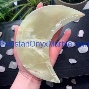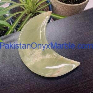 Pakistan Onyx Marble manufactures premium Light Green Onyx Moon Trays, carved from Grade-A Light Green Onyx sourced directly from Pakistan. Each tray is sculpted from a single solid block, displaying the soft pastel-green color, subtle veining, and gentle natural translucency of the stone. The crescent moon–shaped silhouette offers a unique, artistic, and elegant form perfect for luxury décor, serving, gifting, and boutique retail displays.