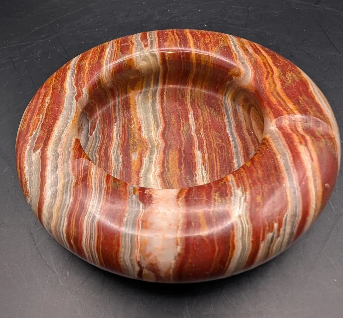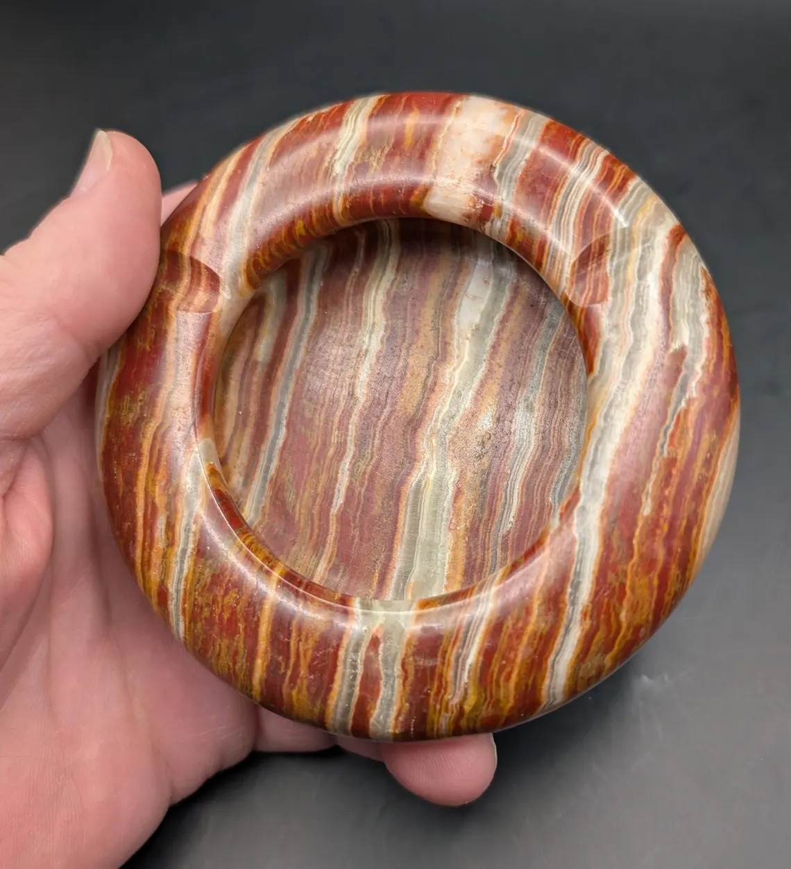 Pakistan Onyx Marble produces premium Multi Brown Onyx Donut Trays crafted from Grade-A multi-toned Brown Onyx sourced from Pakistan. Each tray is carved from a single solid onyx block, showcasing rich earth tones—brown, caramel, cream, honey, and amber veining. The signature donut design features a smooth circular outer body with a precise recessed center, giving the tray a sculptural, modern, and luxurious appearance. These trays are ideal for high-end décor styling, boutique displays, vanity organization, and premium serving presentations.