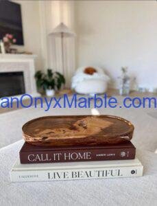 Pakistan Onyx Marble manufactures premium Multi Brown Onyx Oval Trays carved from Grade-A multi-toned Brown Onyx sourced directly from Pakistan. Each tray is made from a single solid block, showcasing the stone’s natural blend of browns, honey tones, caramel waves, amber streaks, and ivory banding. The oval silhouette provides a smooth, elegant, and spacious serving surface—perfect for décor styling, kitchen use, vanity organization, and boutique retail display.