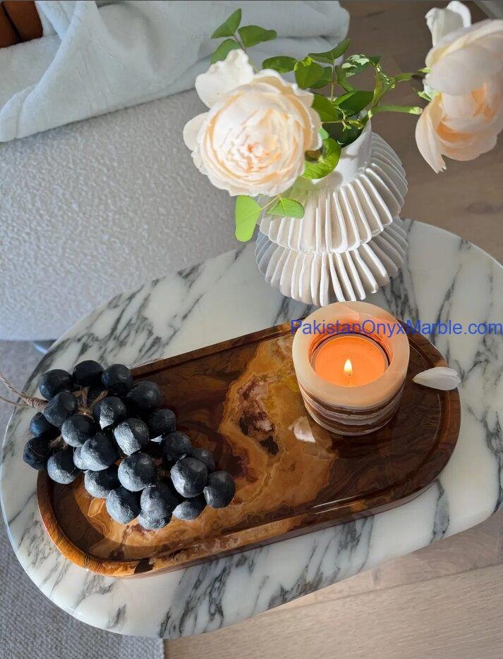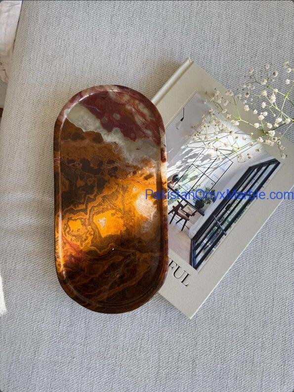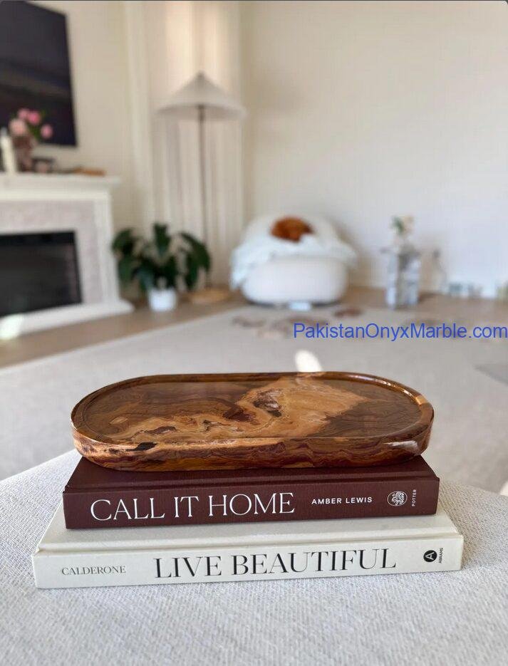 Multi Brown Onyx Serving Trays – Oval Design
