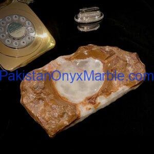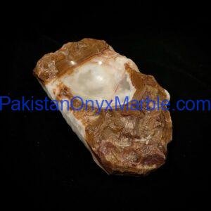 Pakistan Onyx Marble produces premium Multi Brown Onyx Raw-Edge Trays crafted from Grade-A multi-toned Brown Onyx sourced directly from Pakistan. Each tray is carved from a single solid block, with a fully polished top surface and naturally rough, raw stone edges preserved around the outer perimeter. This creates a striking contrast between refined luxury and organic natural beauty. The stone’s warm color palette—browns, caramel bands, honey veins, amber waves, and cream streaks—makes each piece entirely unique and ideal for interior styling, premium serving, and boutique retail displays.
