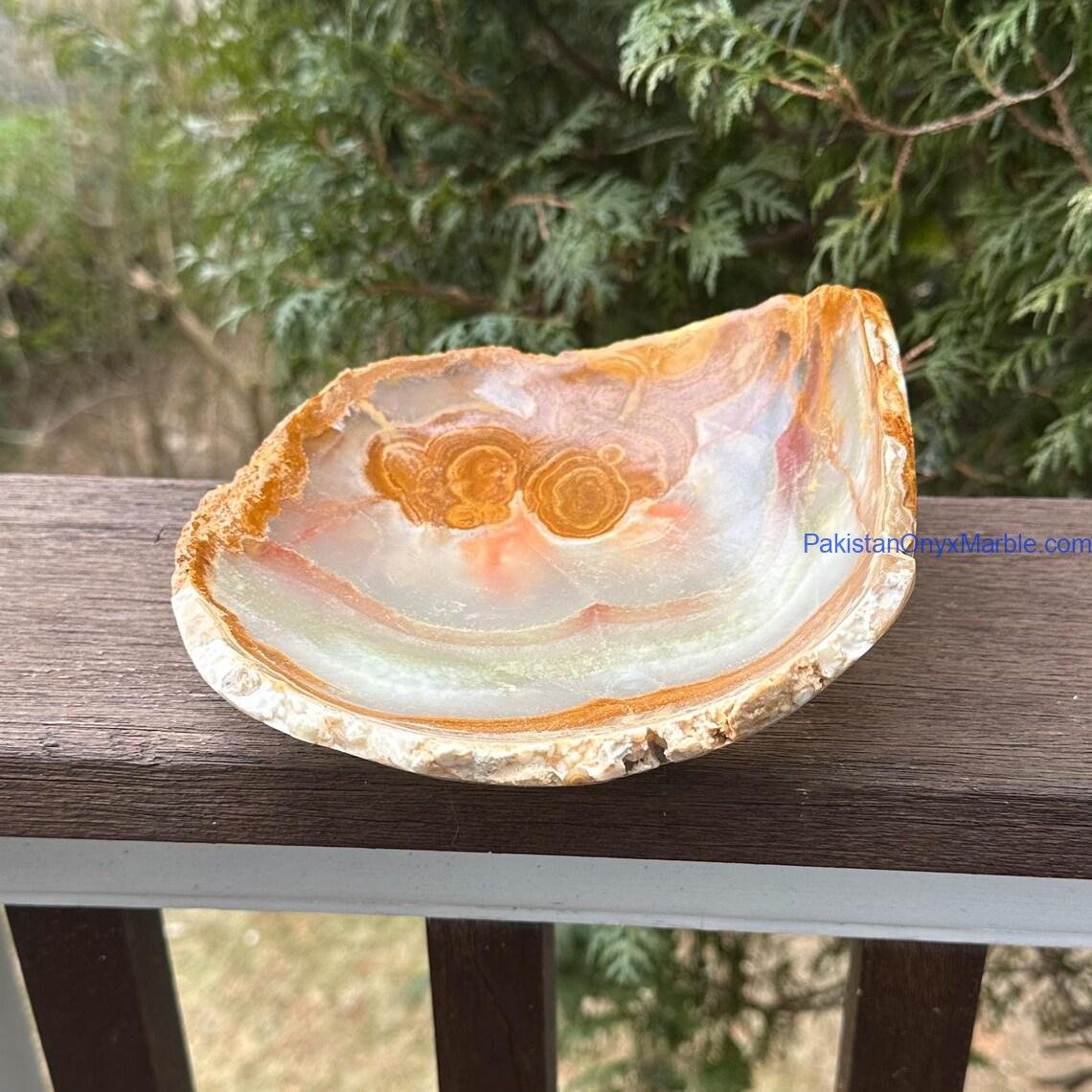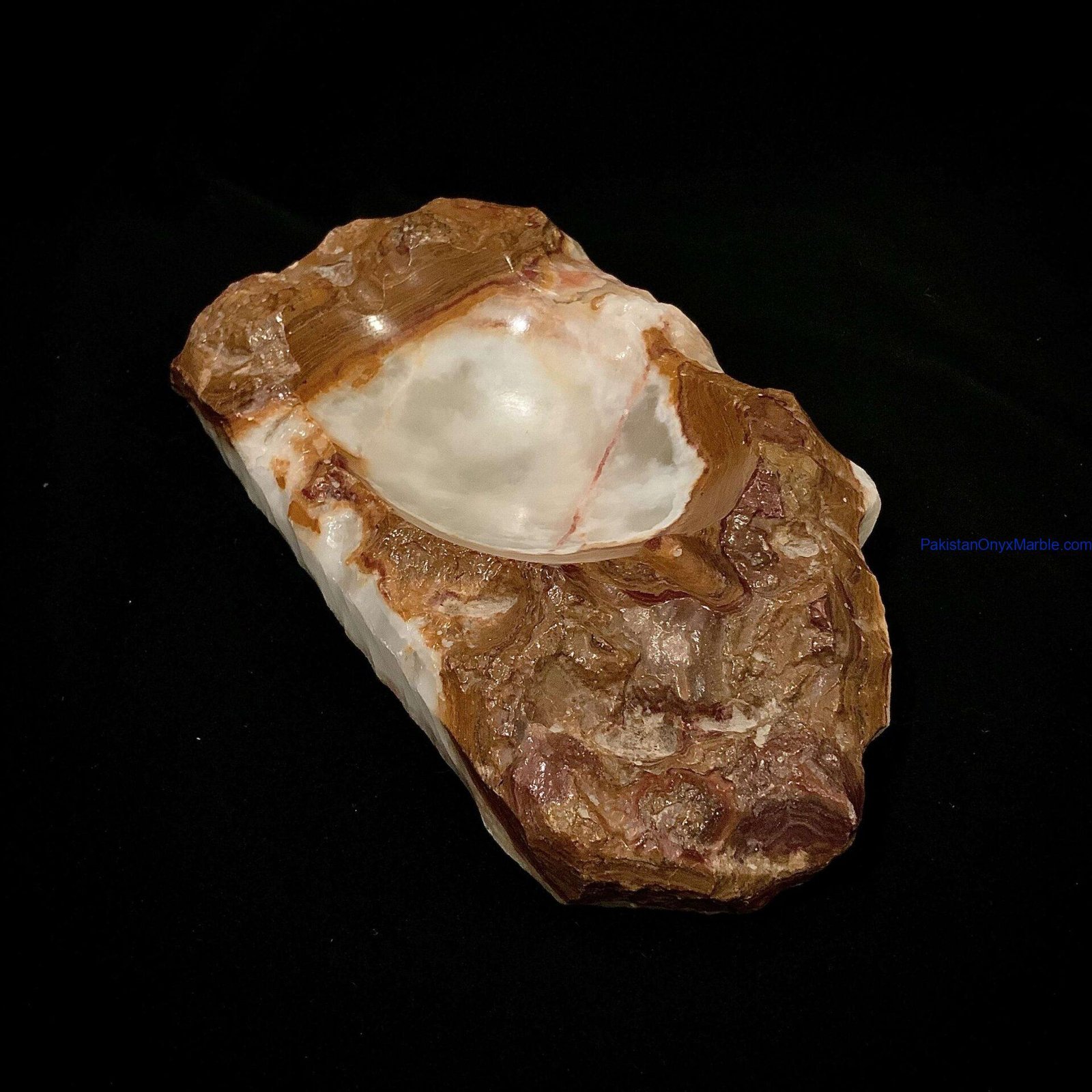 Pakistan Onyx Marble produces premium Multi Brown Onyx Raw-Edge Trays crafted from Grade-A multi-toned Brown Onyx sourced directly from Pakistan. Each tray is carved from a single solid block, with a fully polished top surface and naturally rough, raw stone edges preserved around the outer perimeter. This creates a striking contrast between refined luxury and organic natural beauty. The stone’s warm color palette—browns, caramel bands, honey veins, amber waves, and cream streaks—makes each piece entirely unique and ideal for interior styling, premium serving, and boutique retail displays.