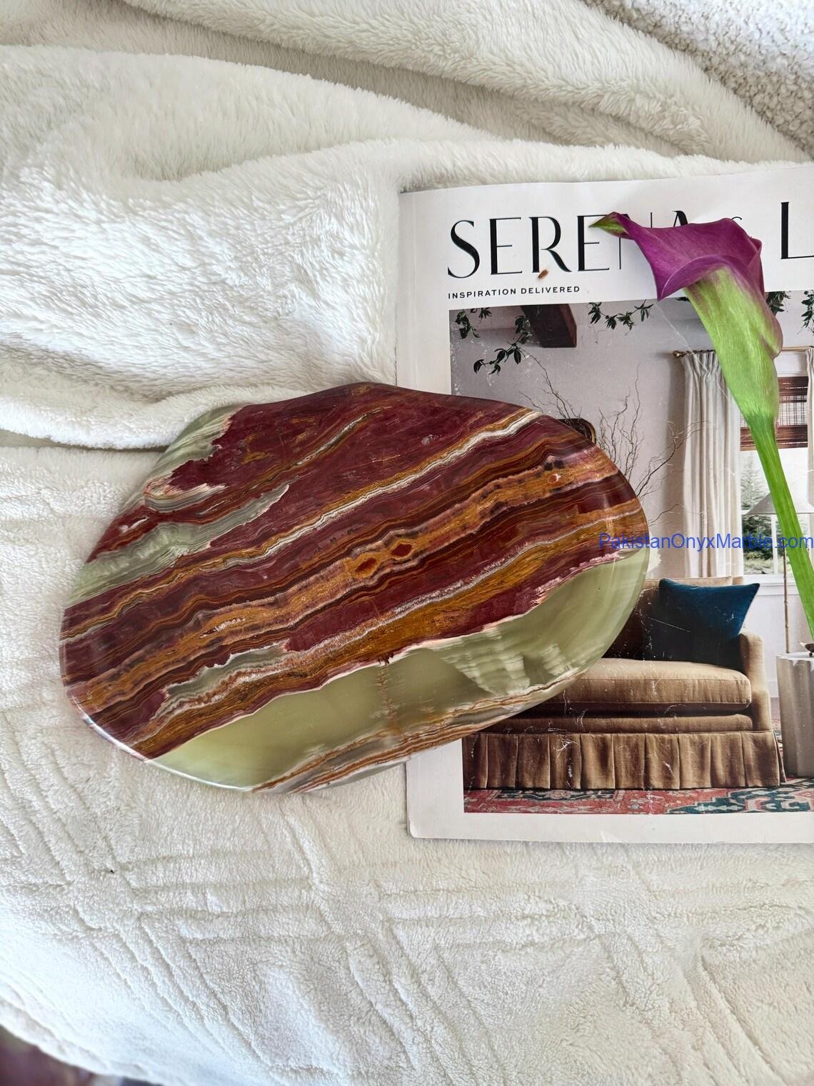 Multi Green Onyx irregular tray, natural green onyx freeform tray, multi-tone green onyx irregular serving tray, handcrafted green onyx organic tray, polished multi green onyx irregular board, luxury green stone irregular tray, premium multi green onyx home decor tray, green onyx freeform display tray, artisan carved green onyx irregular dish, boutique display multi green onyx irregular tray, jade-toned onyx irregular tray, green onyx vanity irregular organizer, hotel decor green onyx irregular tray, multi green onyx charcuterie irregular board, Pakistan green onyx organic tray, multi green onyx decorative irregular platter, elegant natural stone irregular tray, wavy edge green onyx tray, sculpted multi green onyx serving tray, artistic natural onyx irregular design