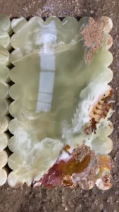 Multi Green Onyx Serving Trays – Scalloped Rectangle Design