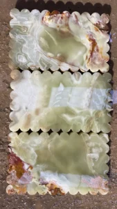 Pakistan Onyx Marble specializes in high-precision hand-carving using solid Afghan Snow White Onyx blocks. Every tray is shaped, polished, and checked by skilled craftsmen with years of export experience.