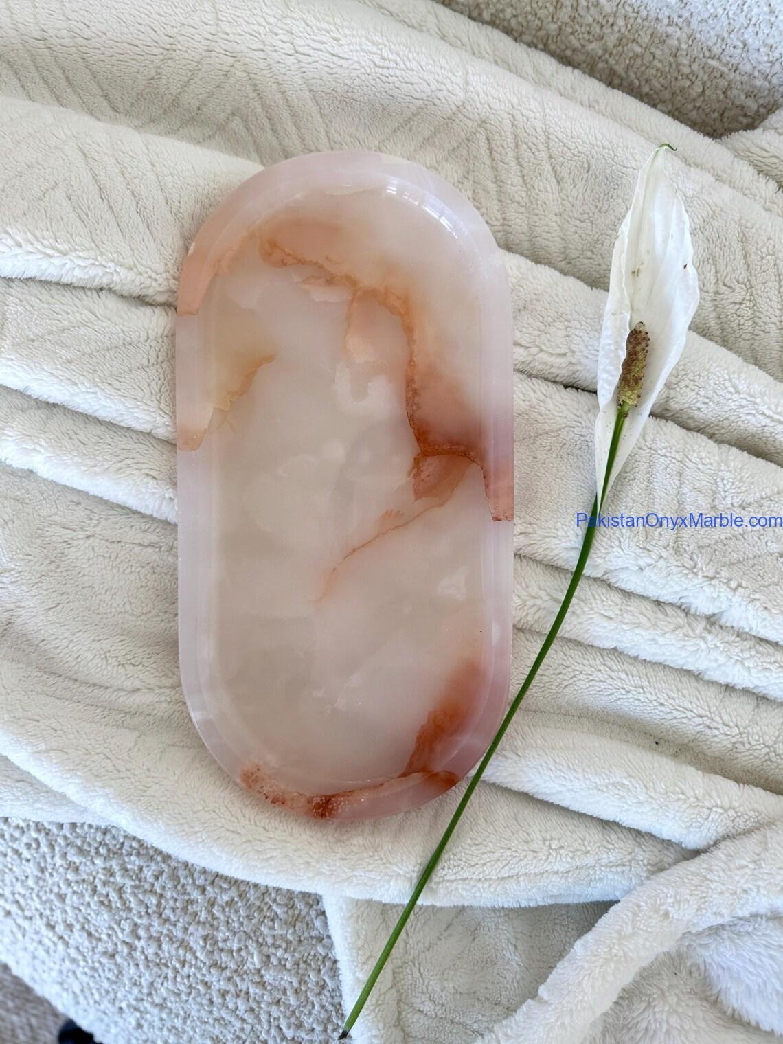 • Each tray carved from a single natural Pink Onyx block