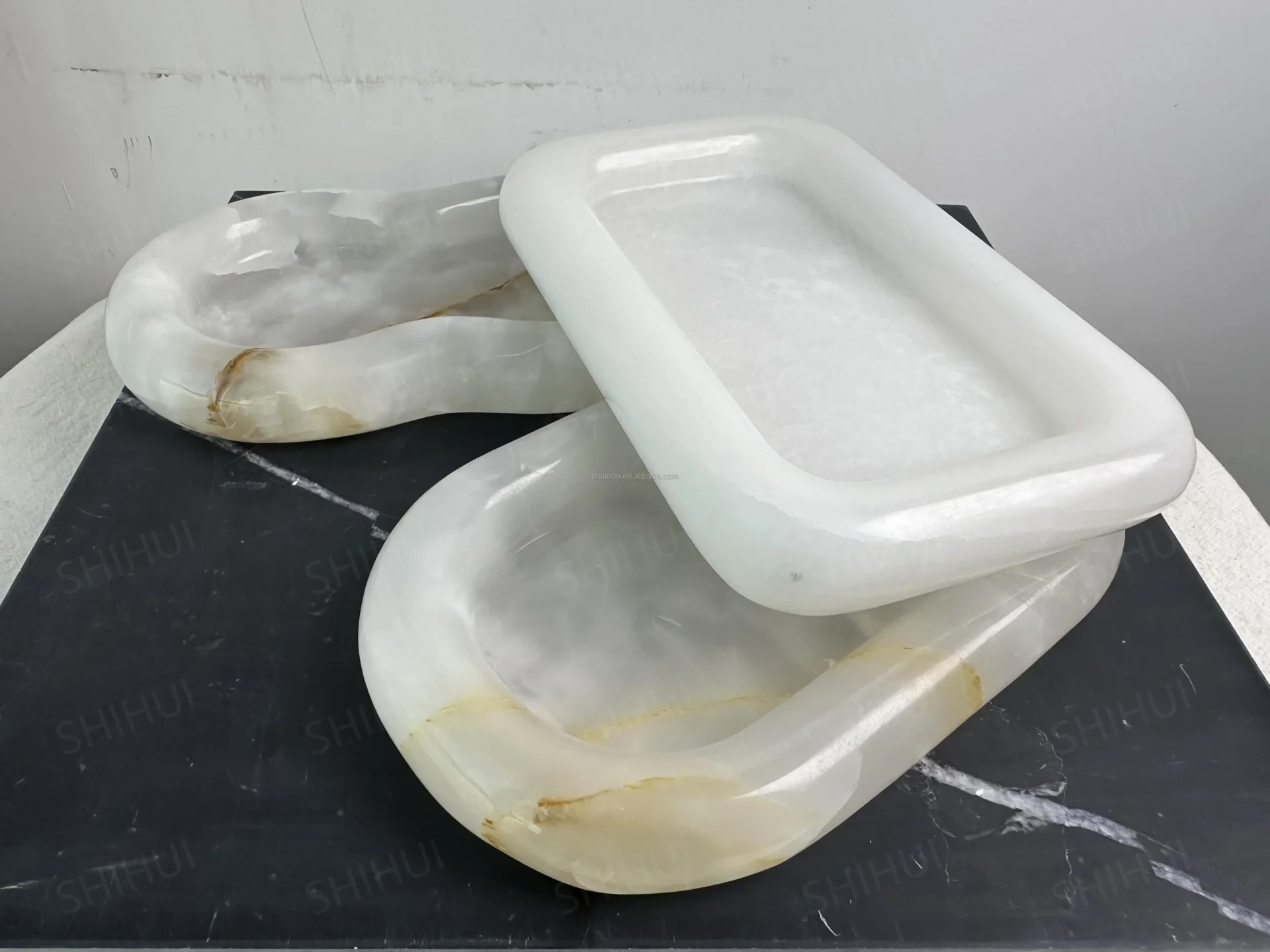 Pakistan Onyx Marble specializes in high-precision hand-carving using solid Afghan Snow White Onyx blocks. Every tray is shaped, polished, and checked by skilled craftsmen with years of export experience.