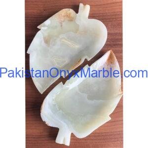 Pakistan Onyx Marble manufactures premium White Onyx Leaf-Shaped Trays, crafted from Grade-A Natural White Onyx, known for its pure ivory tone, subtle cloud-like veining, and soft natural translucency.