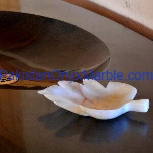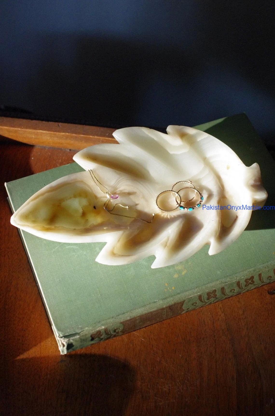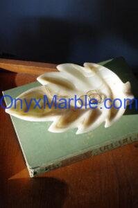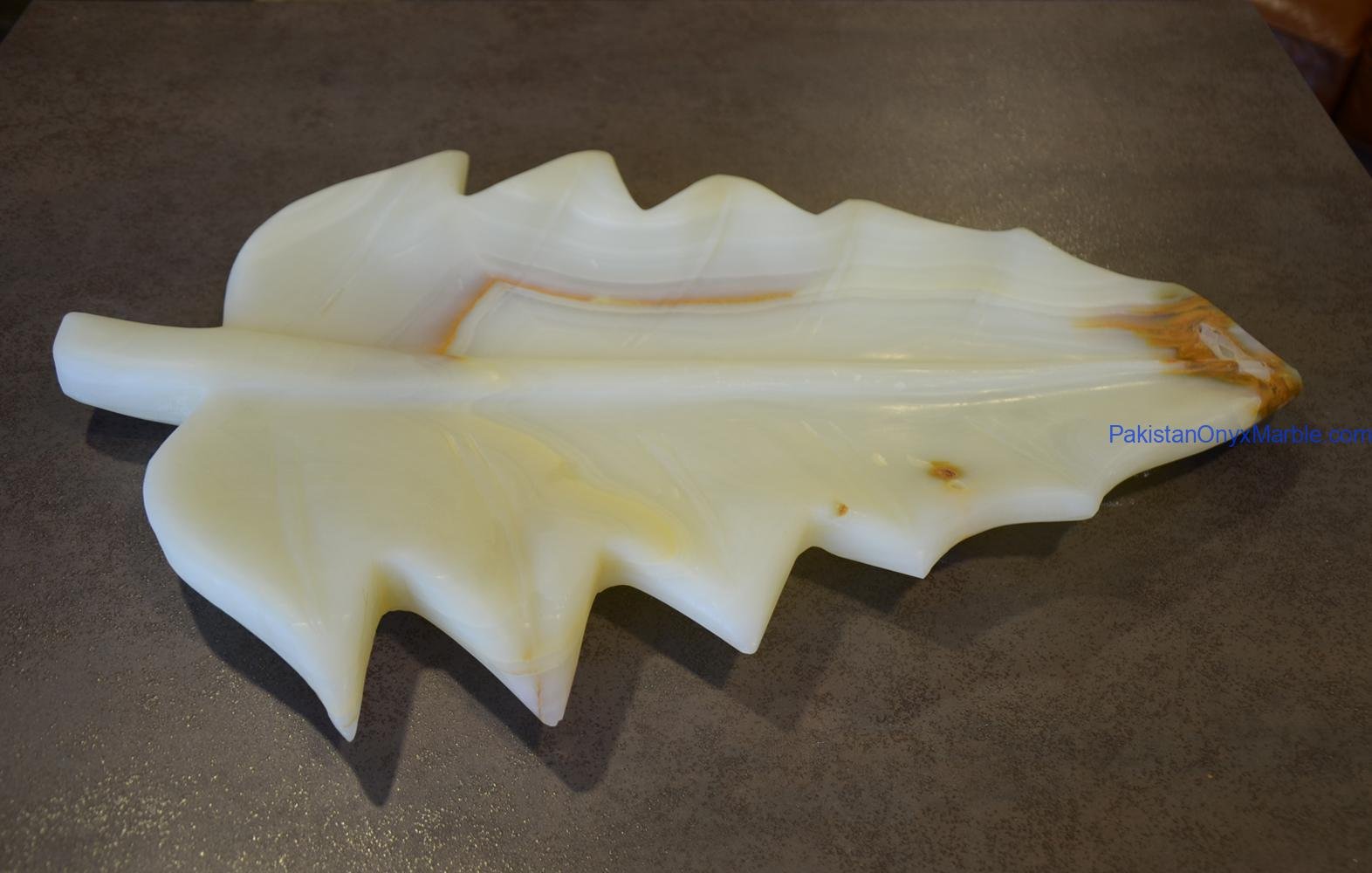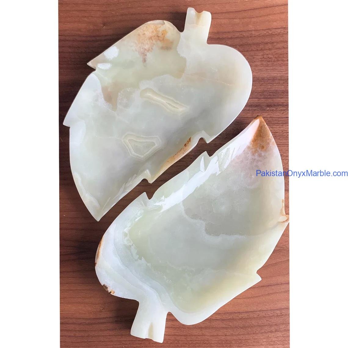 Pakistan Onyx Marble manufactures premium White Onyx Leaf-Shaped Trays, crafted from Grade-A Natural White Onyx, known for its pure ivory tone, subtle cloud-like veining, and soft natural translucency.