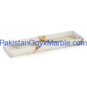 Pakistan Onyx Marble manufactures premium White Onyx Rectangle Serving Trays, carved from Grade-A Natural White Onyx known for its clean ivory tone, subtle cloud-like veining, and natural translucency.