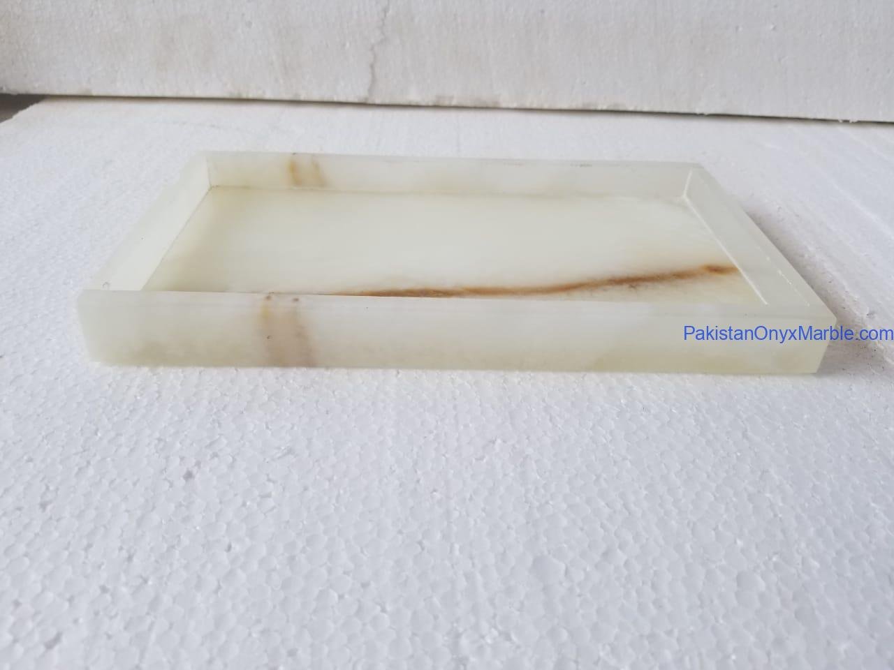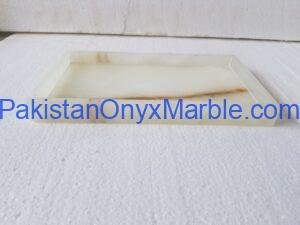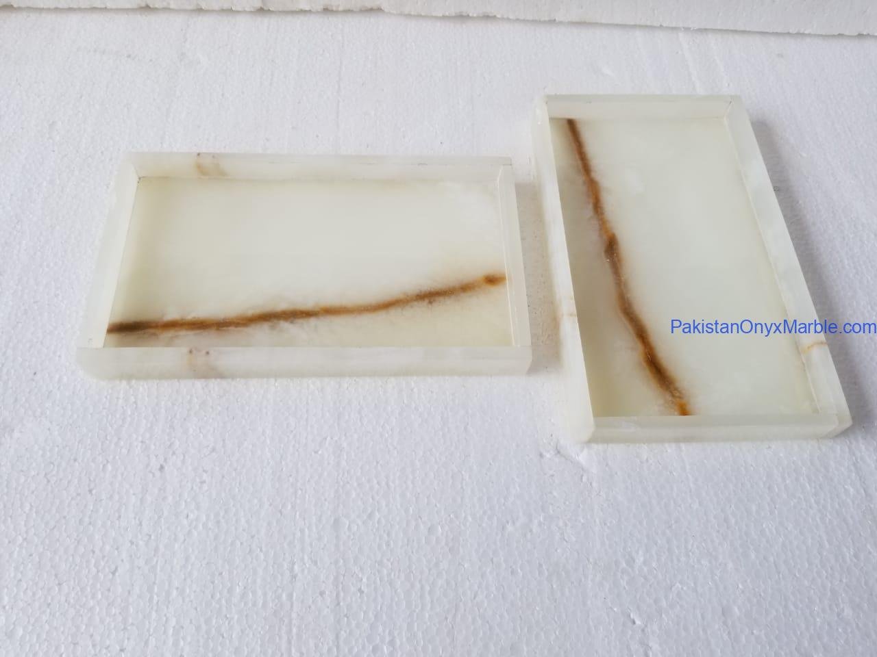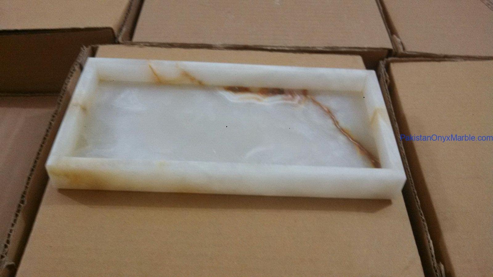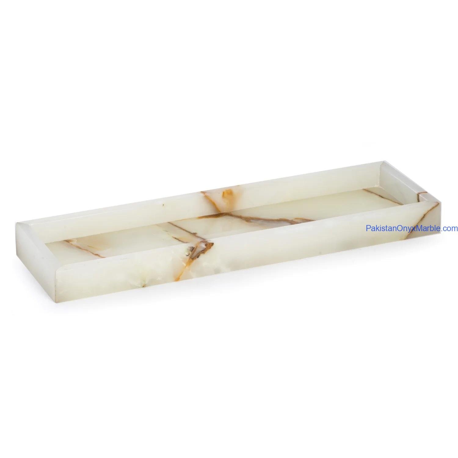 Pakistan Onyx Marble manufactures premium White Onyx Rectangle Serving Trays, carved from Grade-A Natural White Onyx known for its clean ivory tone, subtle cloud-like veining, and natural translucency.
