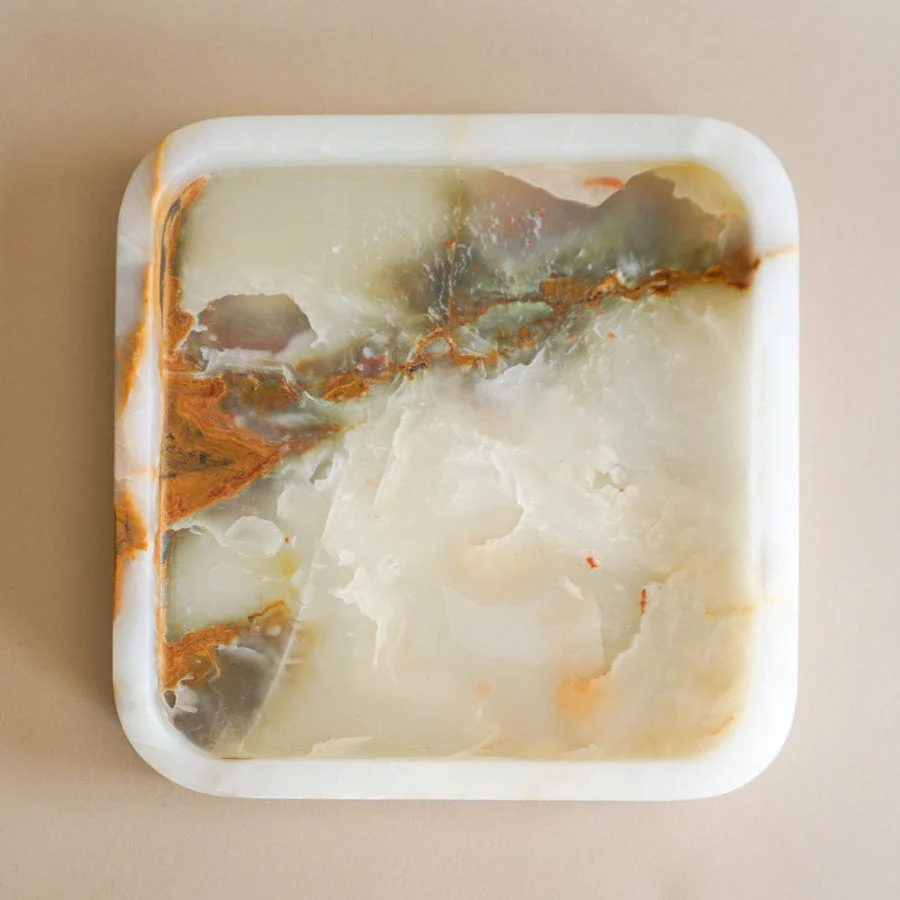 White onyx square tray, natural white onyx serving tray, polished white onyx square platter, handcrafted white onyx square board, luxury white stone square tray, premium white onyx decorative tray, white onyx square display tray, artisan carved white onyx tray, boutique white onyx square dish, translucent white onyx organizer tray, white onyx vanity square tray, hotel décor white onyx tray, Pakistan white onyx square board, minimalist white onyx square tray, white onyx dessert square platter, modern white stone square tray, elegant white onyx table tray, square white onyx serving board