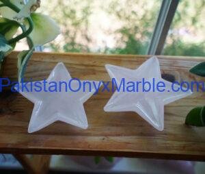 Pakistan Onyx Marble manufactures premium White Onyx Star-Shaped Trays, crafted from Grade-A Natural White Onyx known for its pure ivory tone, cloud-like veining, and natural translucency.