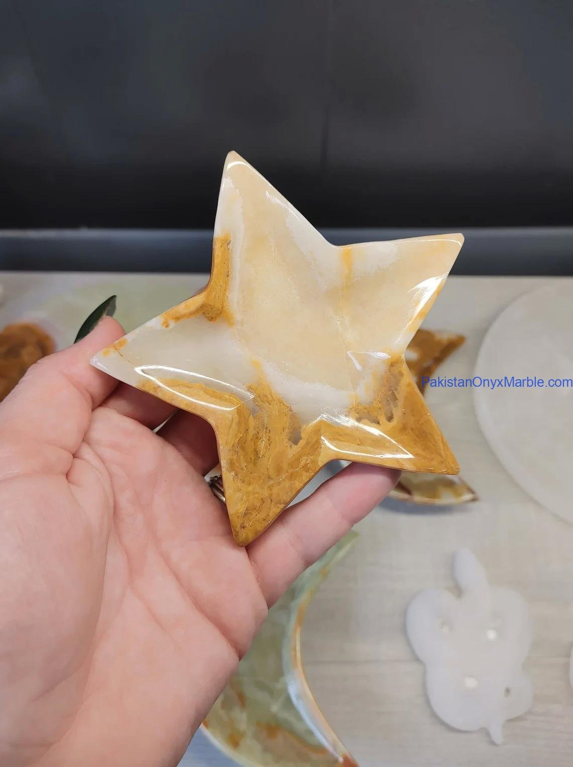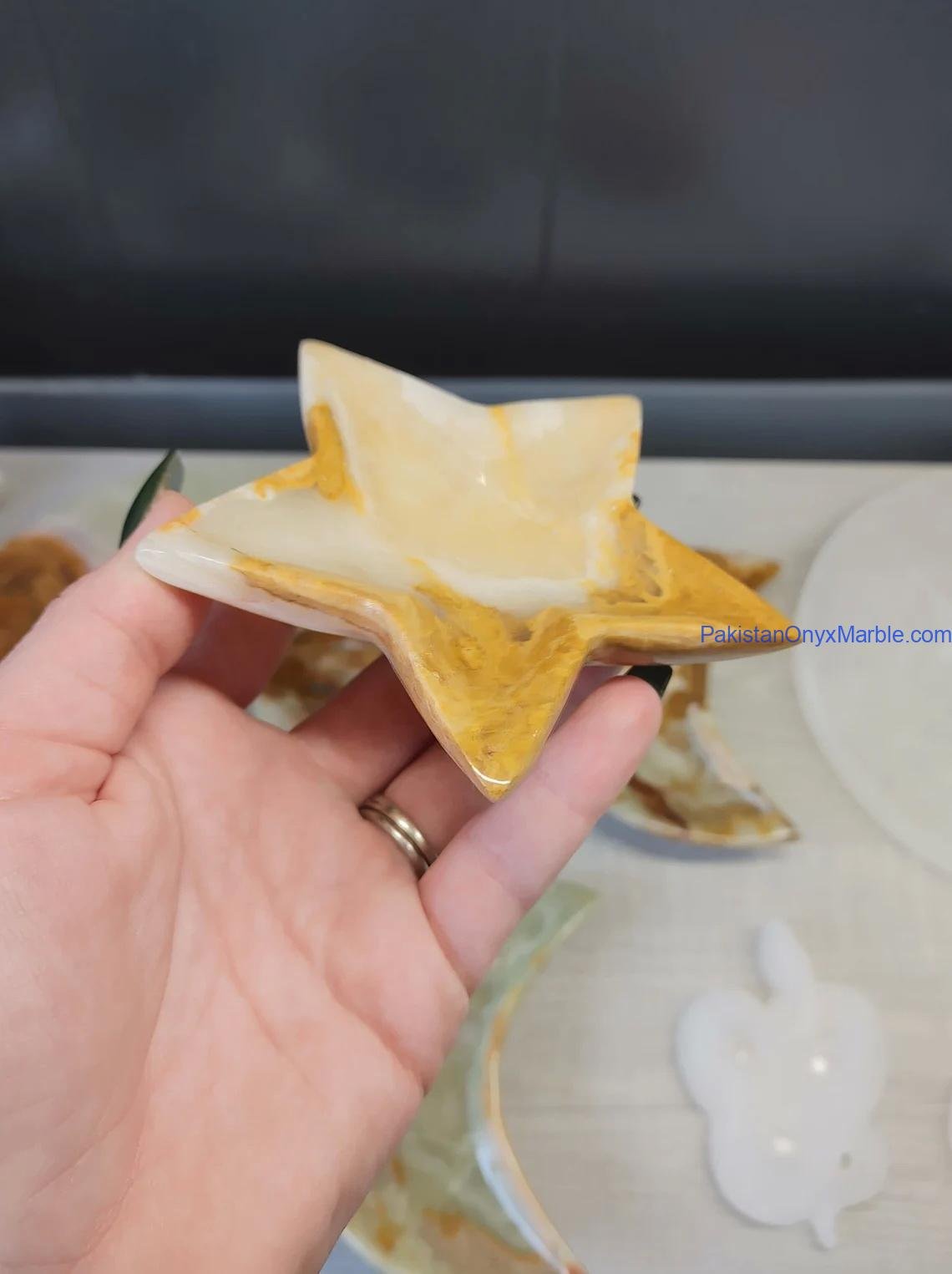Pakistan Onyx Marble manufactures premium White Onyx Star-Shaped Trays, crafted from Grade-A Natural White Onyx known for its pure ivory tone, cloud-like veining, and natural translucency.