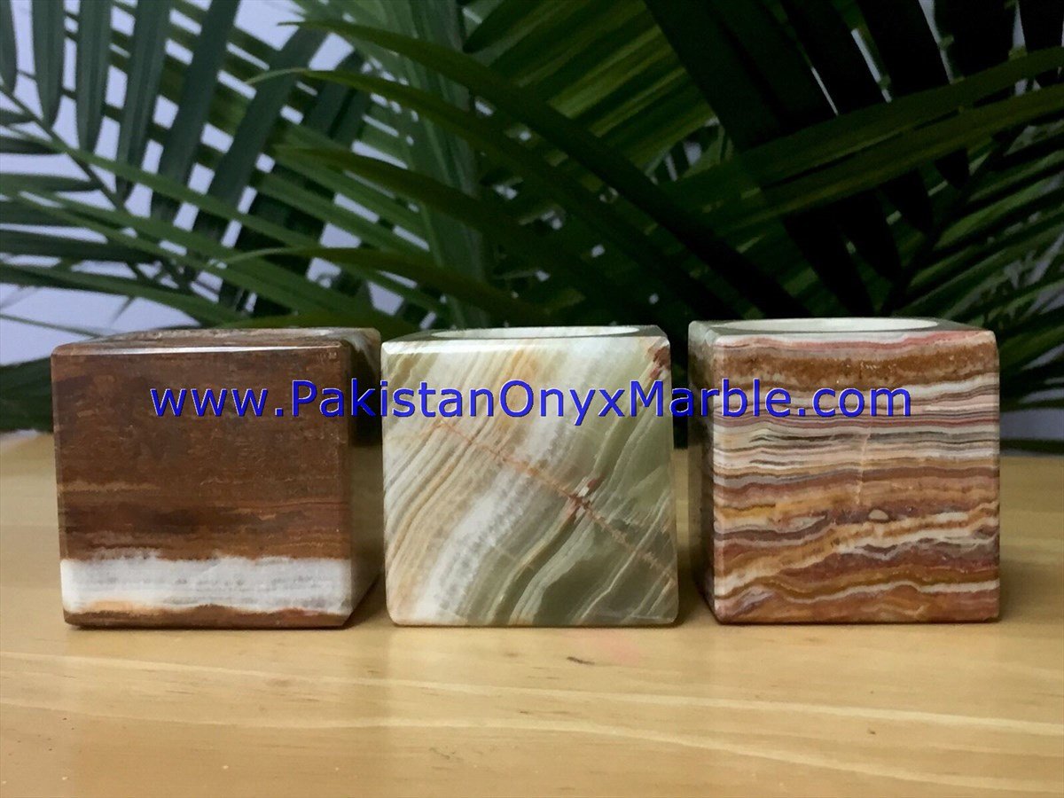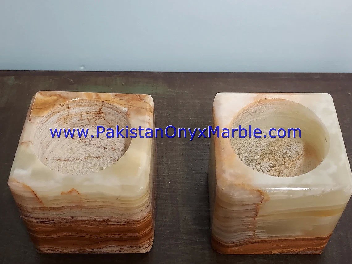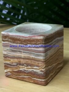 At Pakistan Onyx Marble, we offer a captivating range of Onyx Cube Shaped Candle Holders that exemplify the natural beauty and elegance of onyx stone. Discover details about their sizes, versatile uses, and additional information.