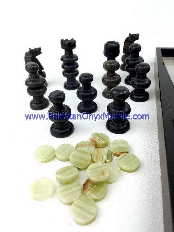 Green Onyx Backgammon Pieces: Backgammon pieces made from green onyx exude sophistication. The smooth, polished surface of the onyx pieces adds a tactile dimension to your backgammon matches, enhancing the overall enjoyment of the game.
