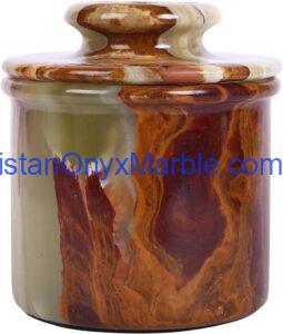 Multi Brown Onyx Stone Butter Dish with Lid