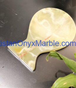 Light Green Onyx Spoon Rests are beautifully crafted kitchen and decor accessories made from premium Pakistani onyx, showcasing soft hues of green, cream, and white. Known for its calming tones and subtle veining, light green onyx adds a touch of nature and luxury to any space.