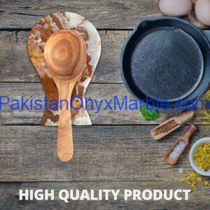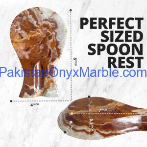 At Pakistan Onyx Marble Company, each spoon rest is hand-carved and polished, highlighting the unique veining and layered patterns of multi brown onyx.