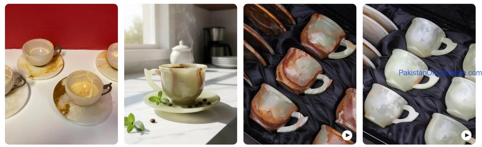 Onyx tea cup sets are available in carefully selected natural stone colors:
