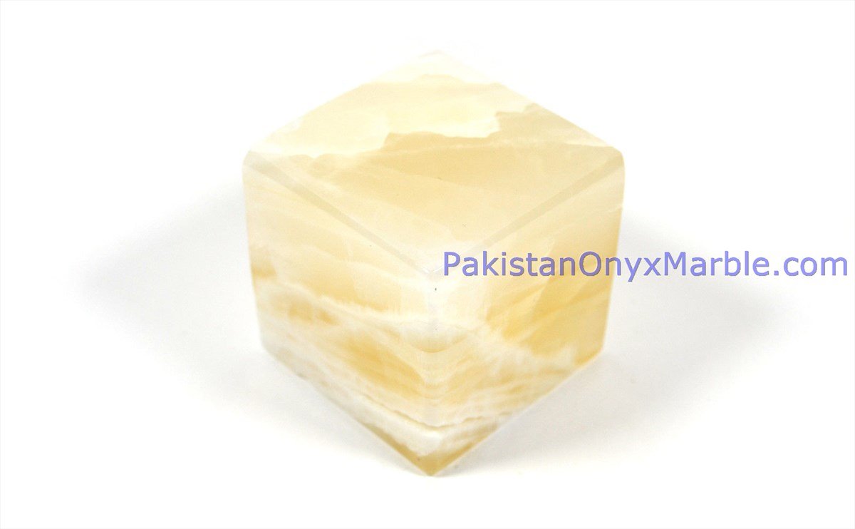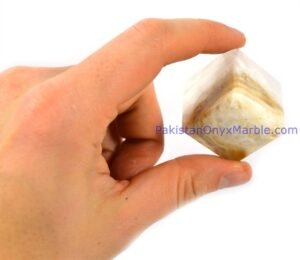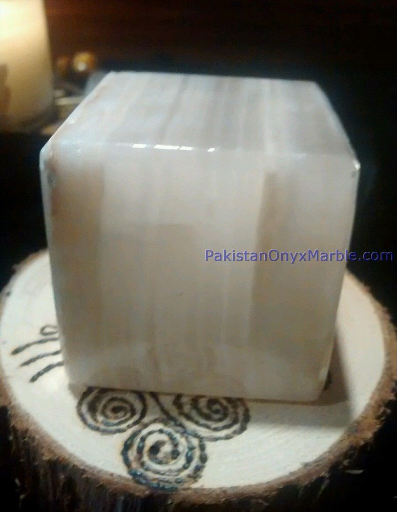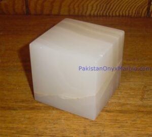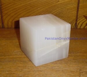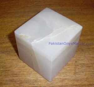 - Polishing: The surface of the White Onyx Cubes is polished to a high sheen, enhancing the stone’s natural translucency and luminosity.