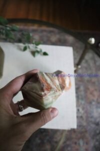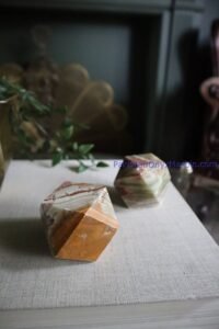 Polishing: Each tetrahedron undergoes meticulous polishing to attain a smooth and lustrous finish, enhancing the natural beauty of the multi-green onyx.