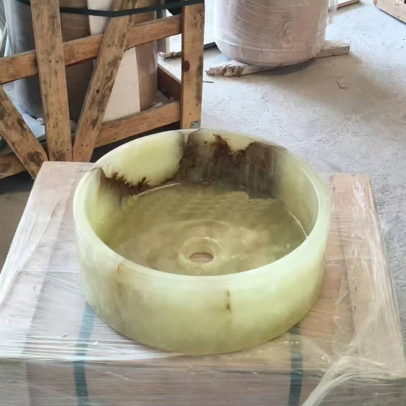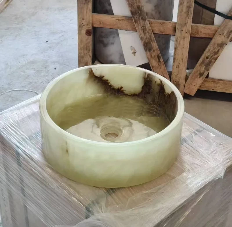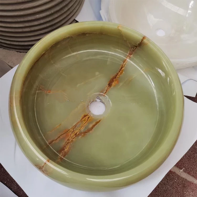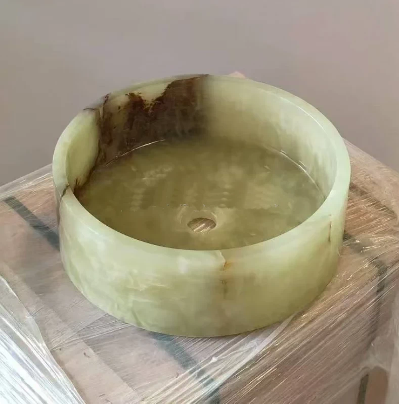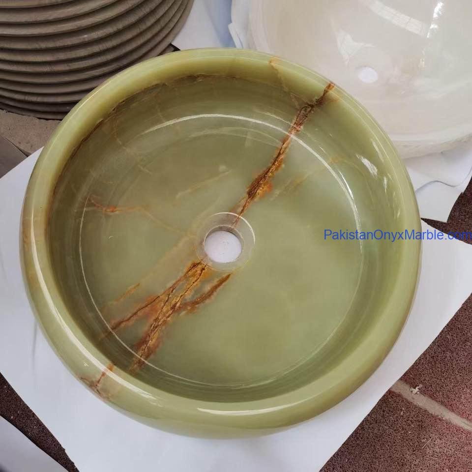 Pakistan Onyx Marble presents a premium collection of Afghan Green Jade Onyx Sinks, crafted from 100% natural green onyx stone. Known for its rich green tones, layered translucency, and striking veining, this material creates sinks that are not just functional but high-impact design pieces.