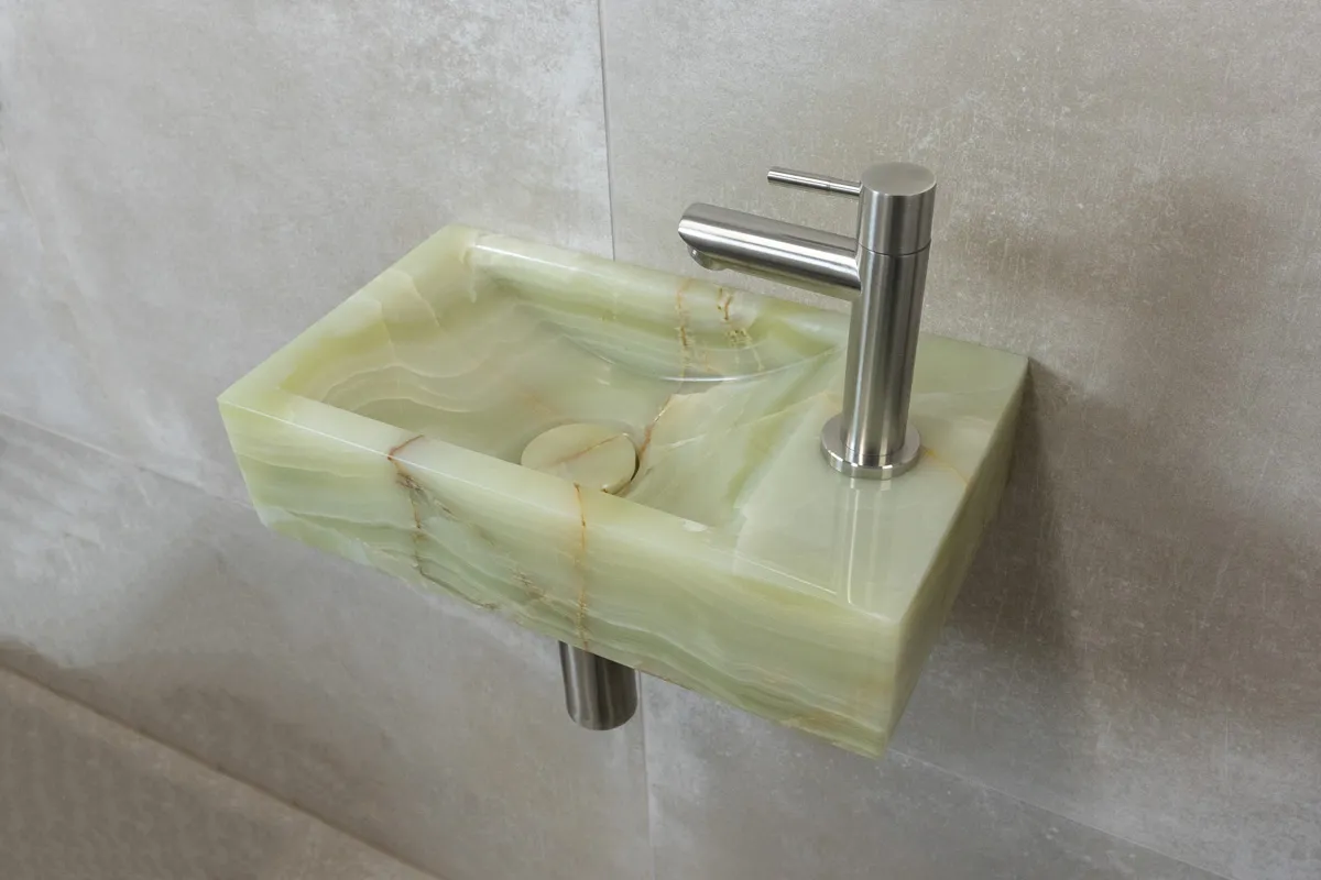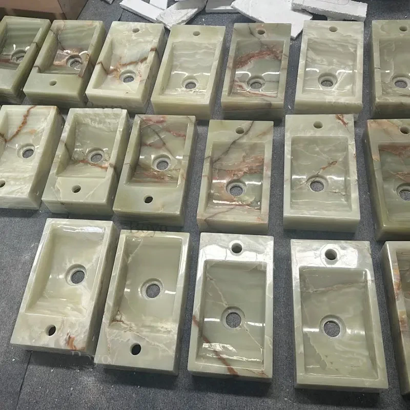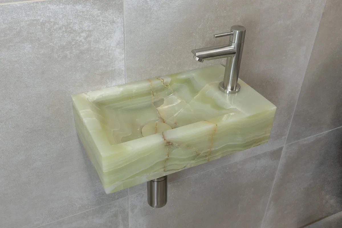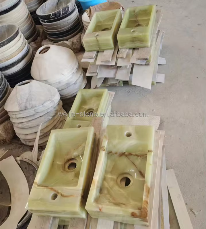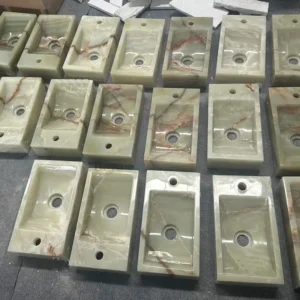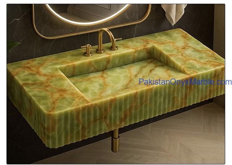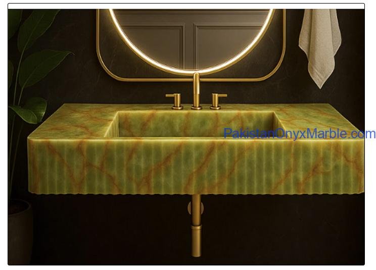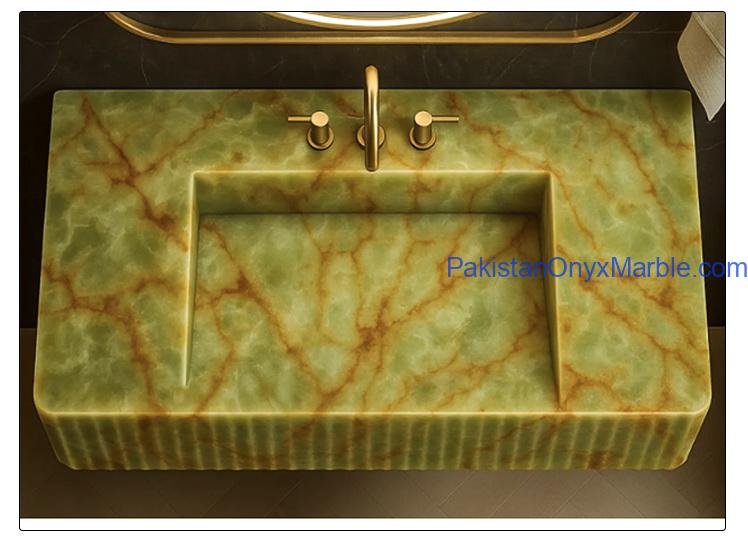 Pakistan Onyx Marble presents a premium collection of Afghan Green Jade Onyx Sinks, crafted from 100% natural green onyx stone. Known for its rich green tones, layered translucency, and striking veining, this material creates sinks that are not just functional but high-impact design pieces.