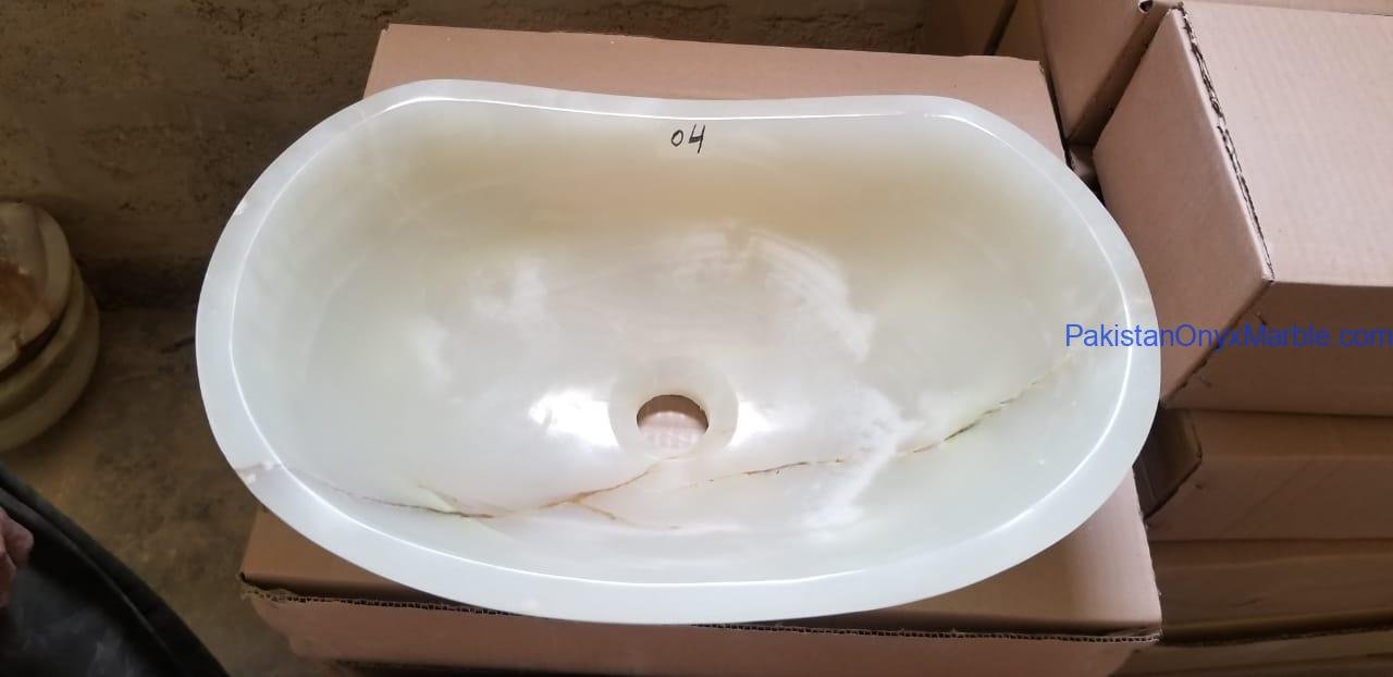 Afghan Snow White Onyx Boat Shaped Sinks | Luxury Bathroom Basins Manufacture & Exporter Photo Gallery