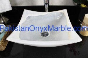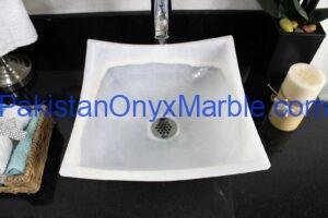 [ Afghan Snow White Onyx Square Shaped Sinks | Luxury Bathroom Basins Manufacture & Exporter ]