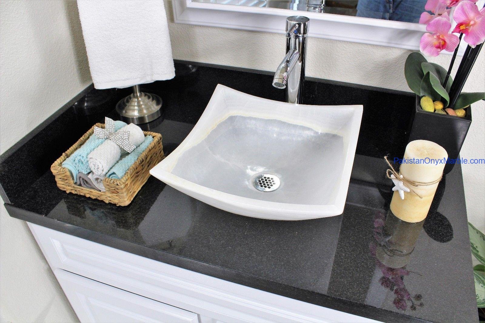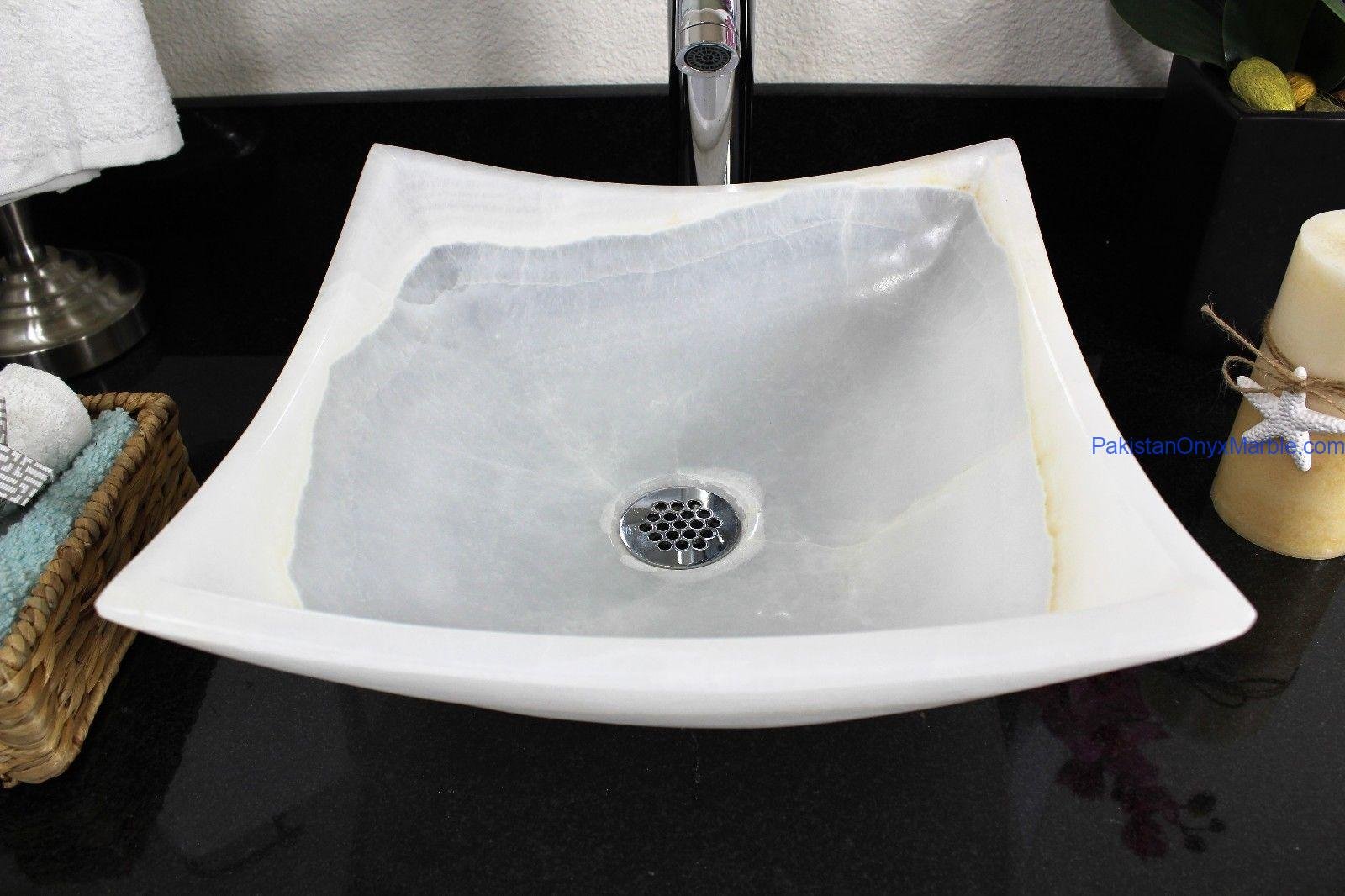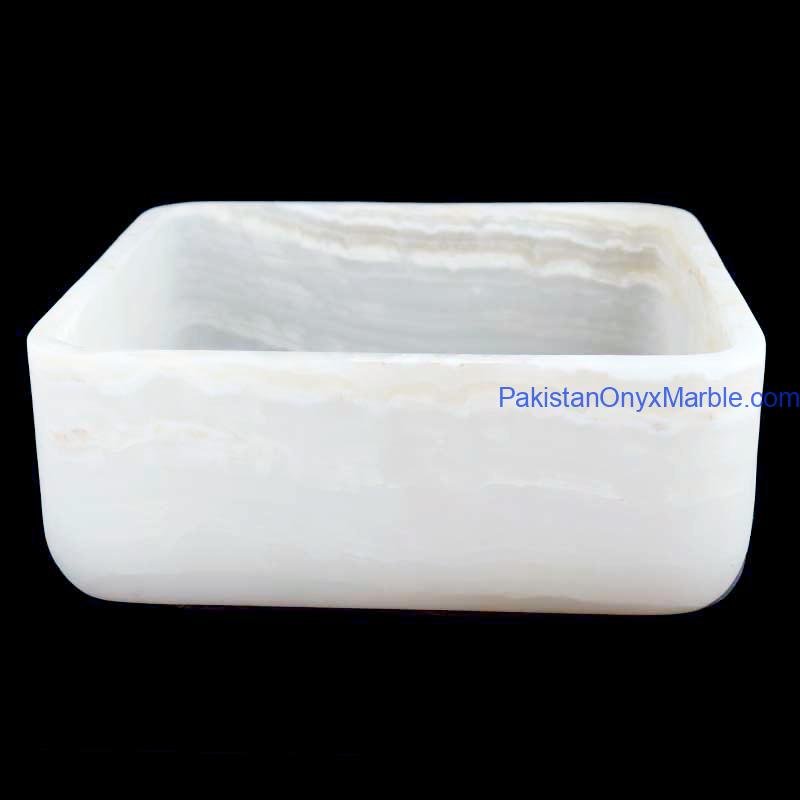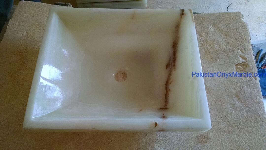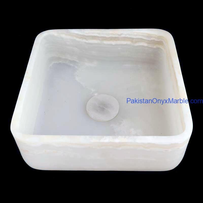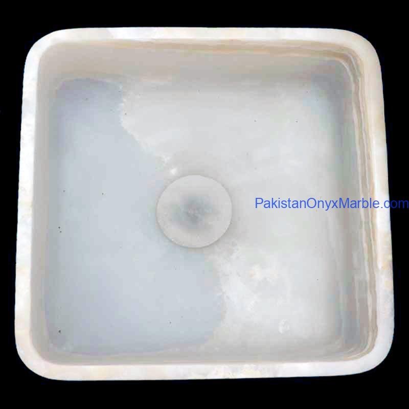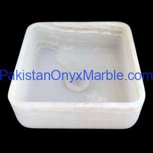 [ Afghan Snow White Onyx Square Shaped Sinks | Luxury Bathroom Basins Manufacture & Exporter ]