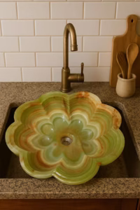 Pakistan Onyx Marble presents a premium collection of natural stone sinks crafted from Onyx, Marble, and Travertine. Designed for luxury interiors, our sinks combine functionality, durability, and high-end aesthetics. Each piece is carved from solid stone, ensuring uniqueness and long-lasting performance.