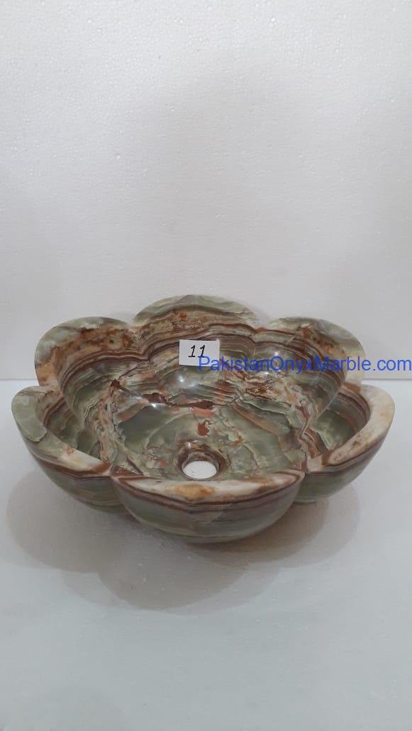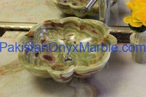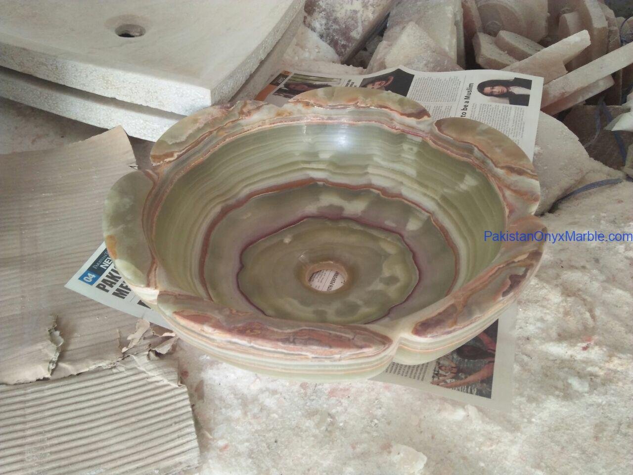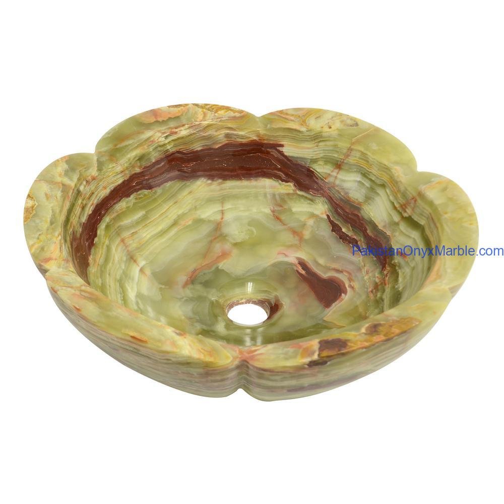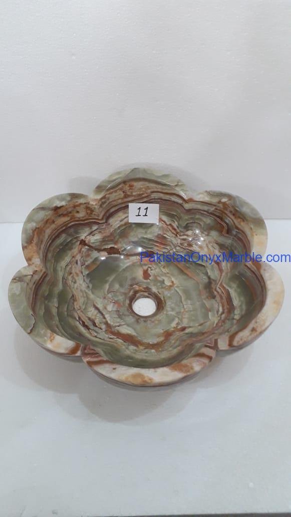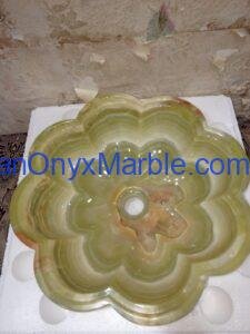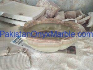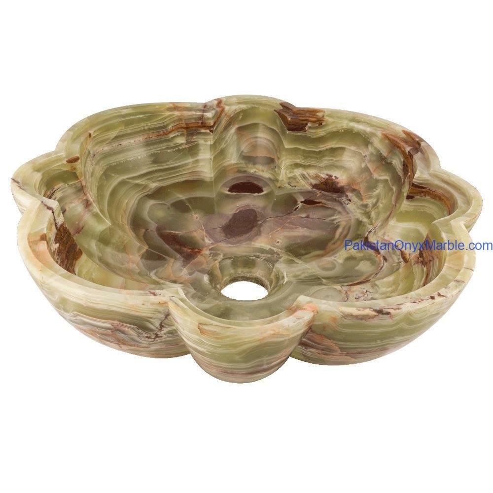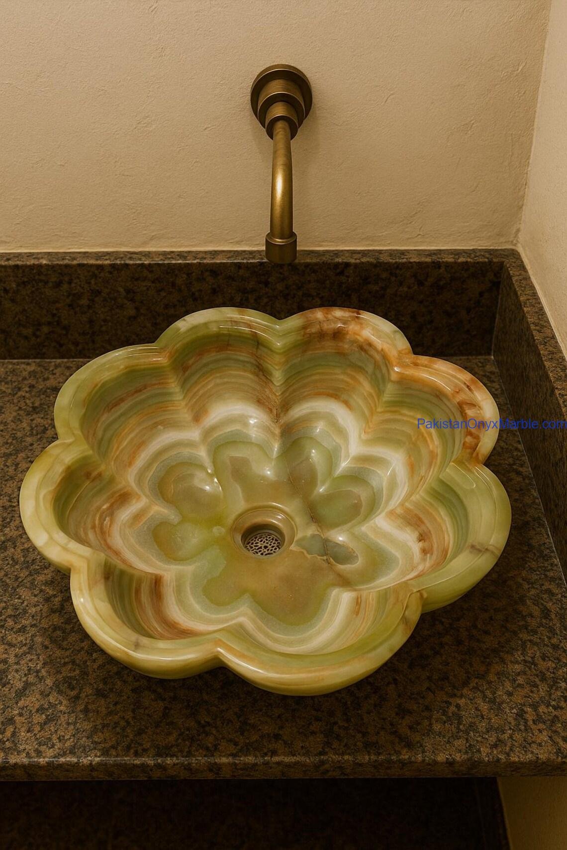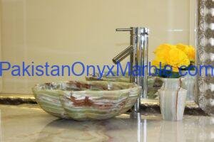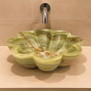 Pakistan Onyx Marble presents a premium collection of Dark Green Onyx Sinks, crafted from 100% natural onyx stone. Known for its deep green tones, bold veining, and rich layered patterns, this stone delivers a strong, luxurious visual impact ideal for high-end interiors.