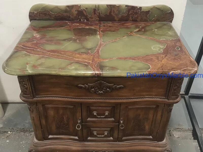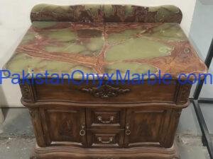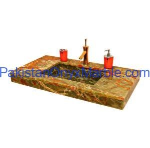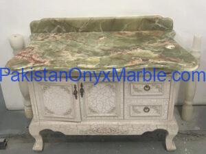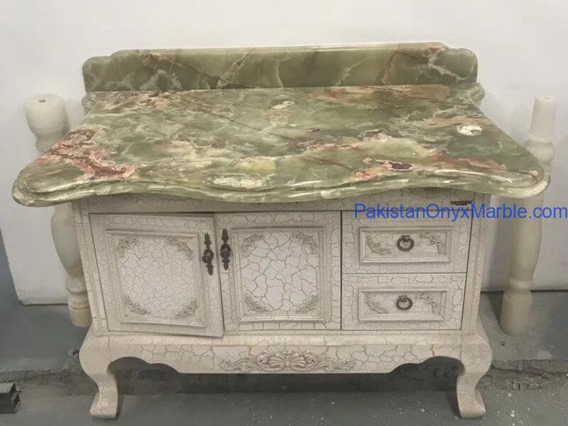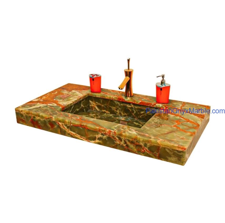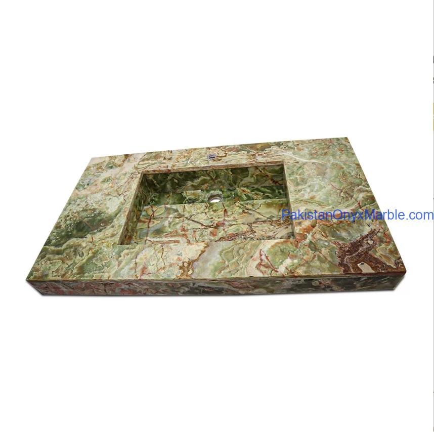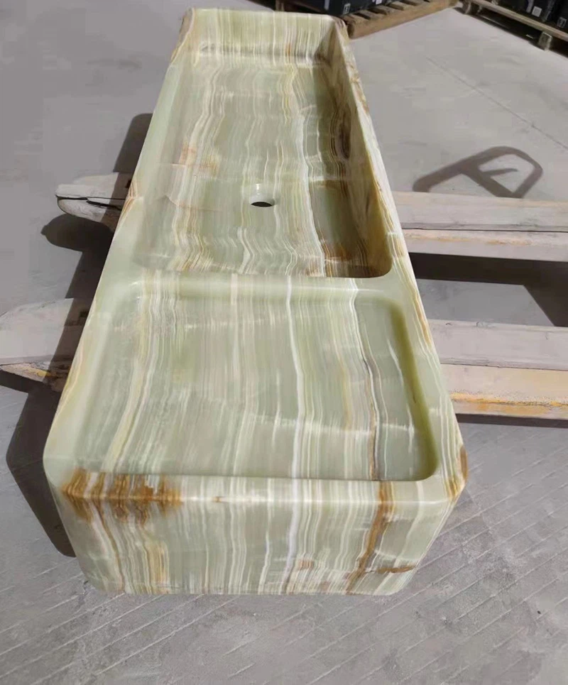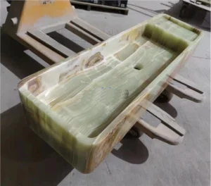 Pakistan Onyx Marble presents a premium collection of Dark Green Onyx Sinks, crafted from 100% natural onyx stone. Known for its deep green tones, bold veining, and rich layered patterns, this stone delivers a strong, luxurious visual impact ideal for high-end interiors.