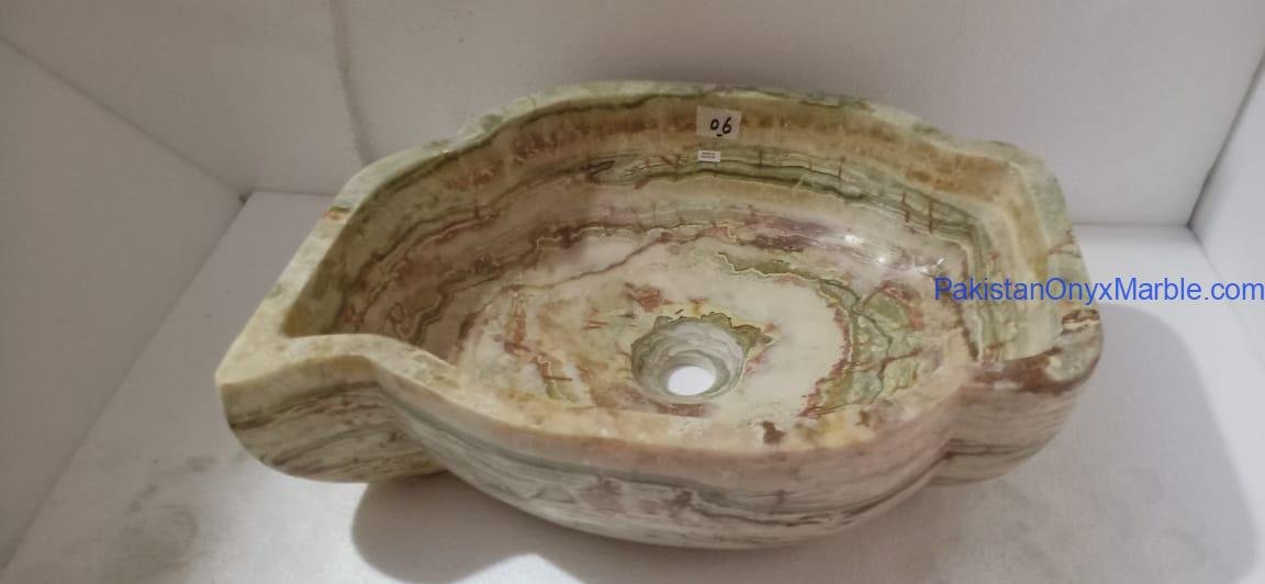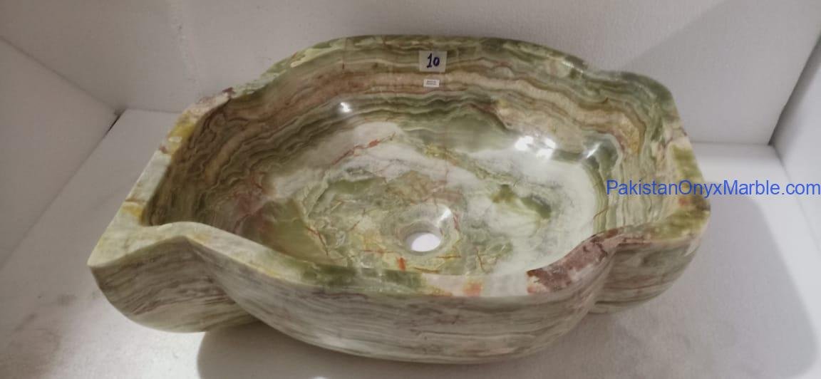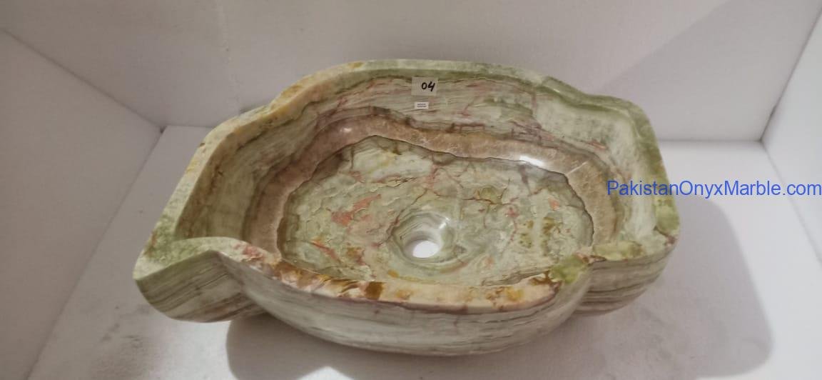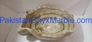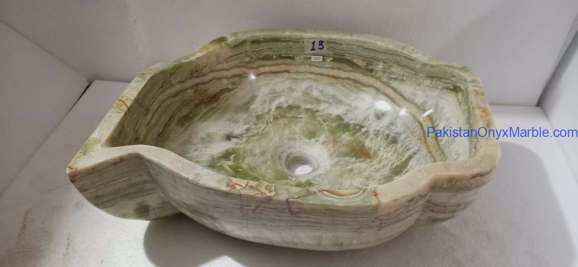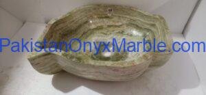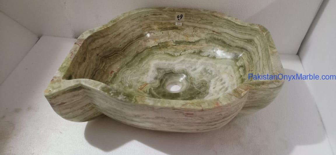 Pakistan Onyx Marble presents a premium collection of Dark Green Onyx Sinks, crafted from 100% natural onyx stone. Known for its deep green tones, bold veining, and rich layered patterns, this stone delivers a strong, luxurious visual impact ideal for high-end interiors.