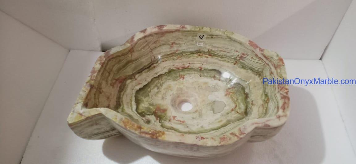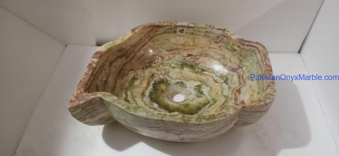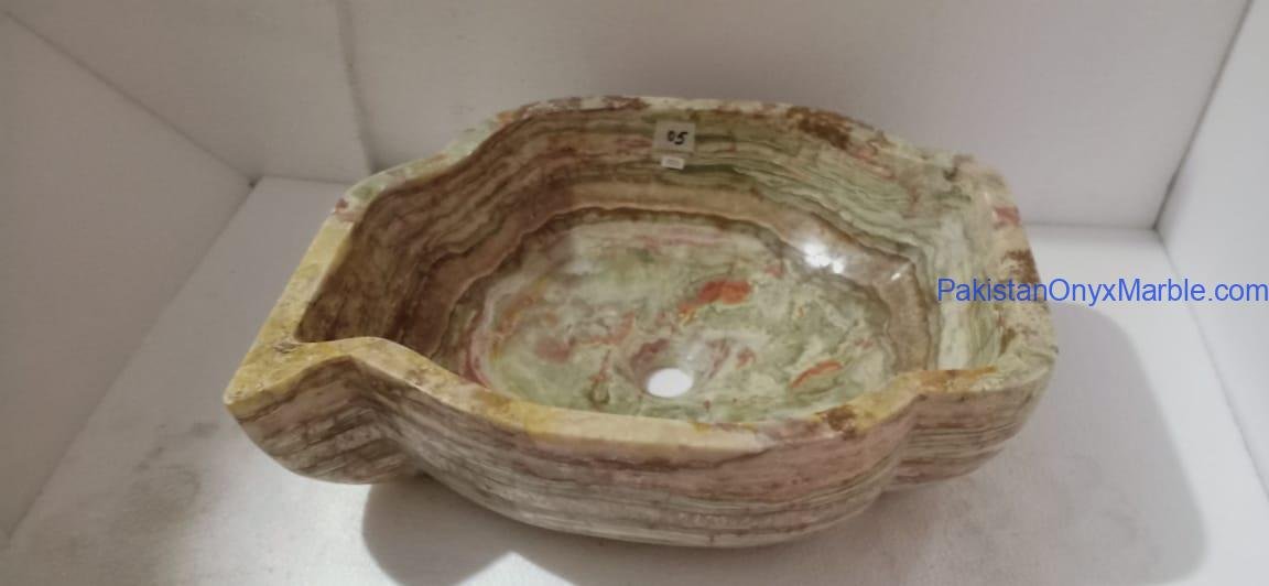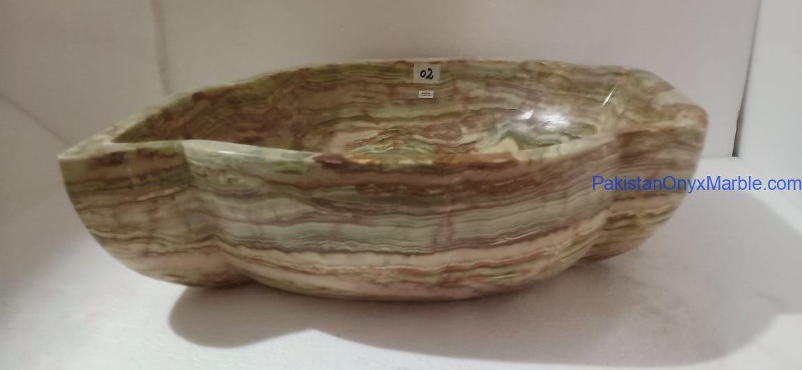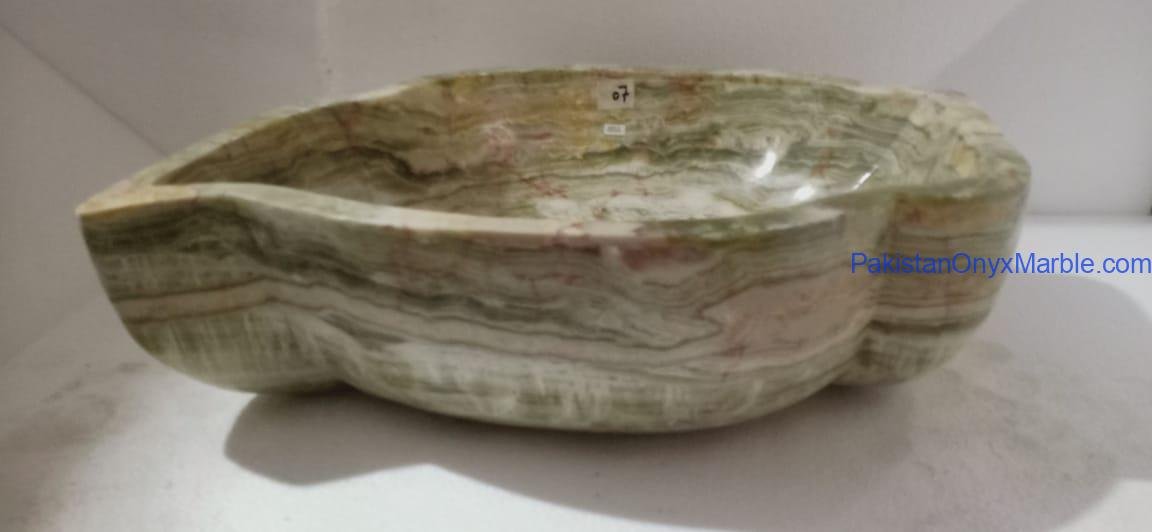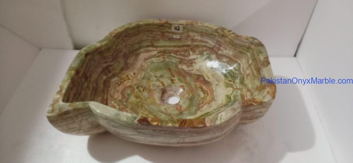 Pakistan Onyx Marble presents a premium collection of Dark Green Onyx Sinks, crafted from 100% natural onyx stone. Known for its deep green tones, bold veining, and rich layered patterns, this stone delivers a strong, luxurious visual impact ideal for high-end interiors.