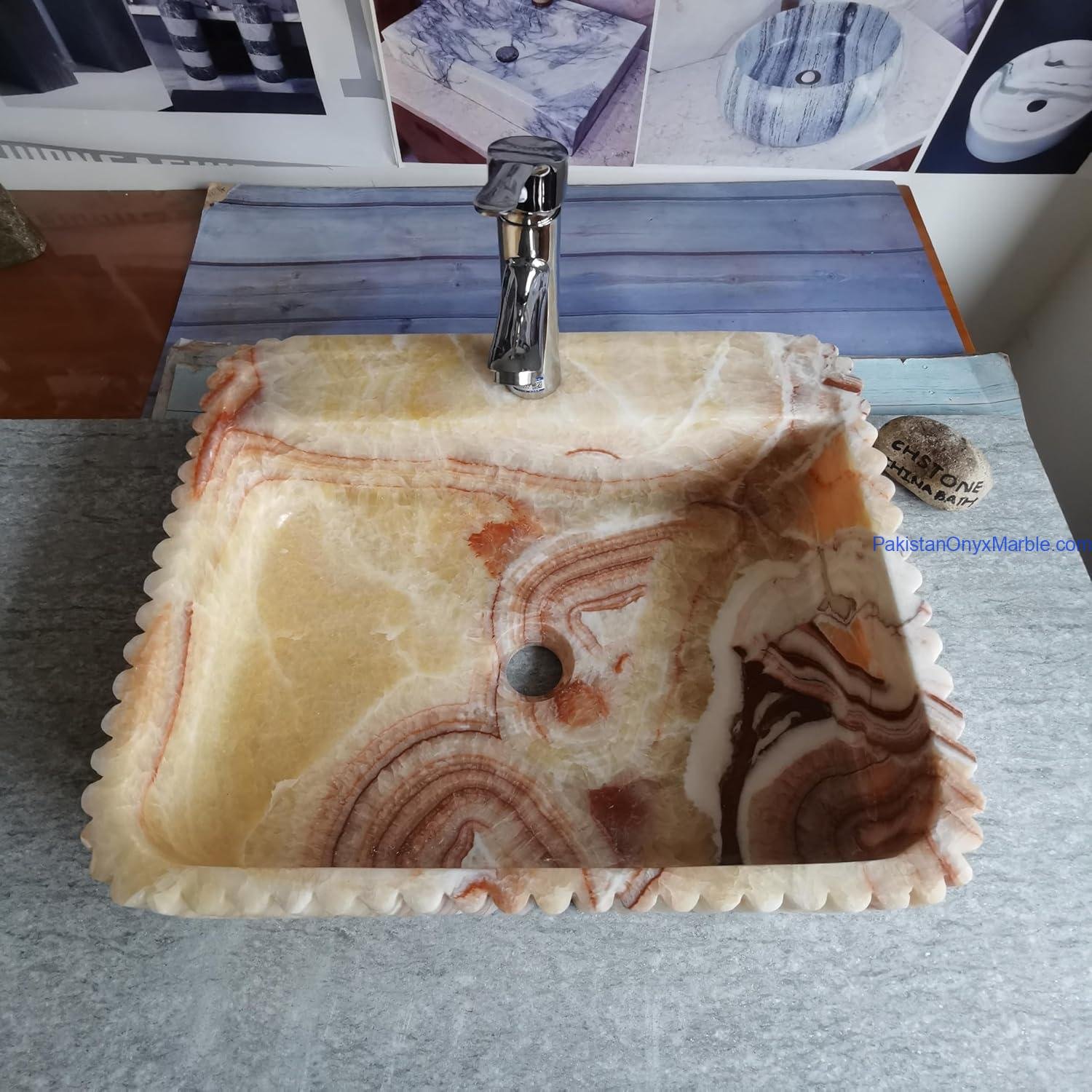Pakistan Onyx Marble offers Orange Honey Onyx sinks in the following shapes: