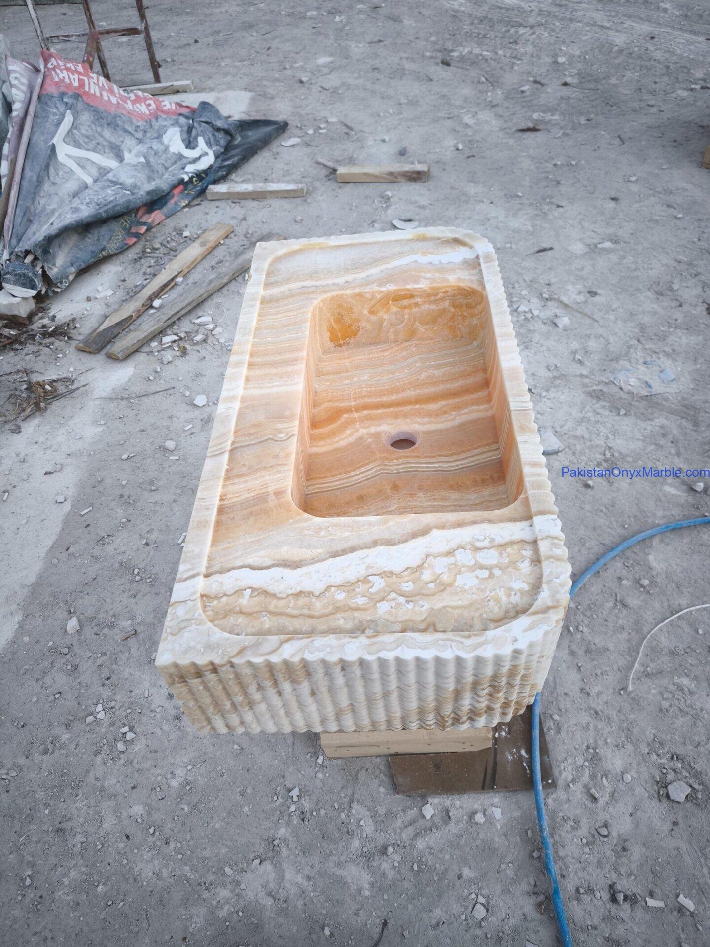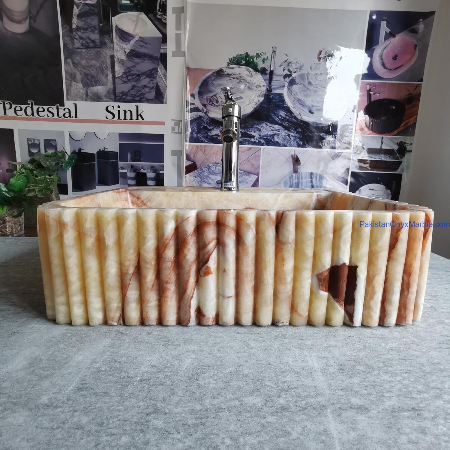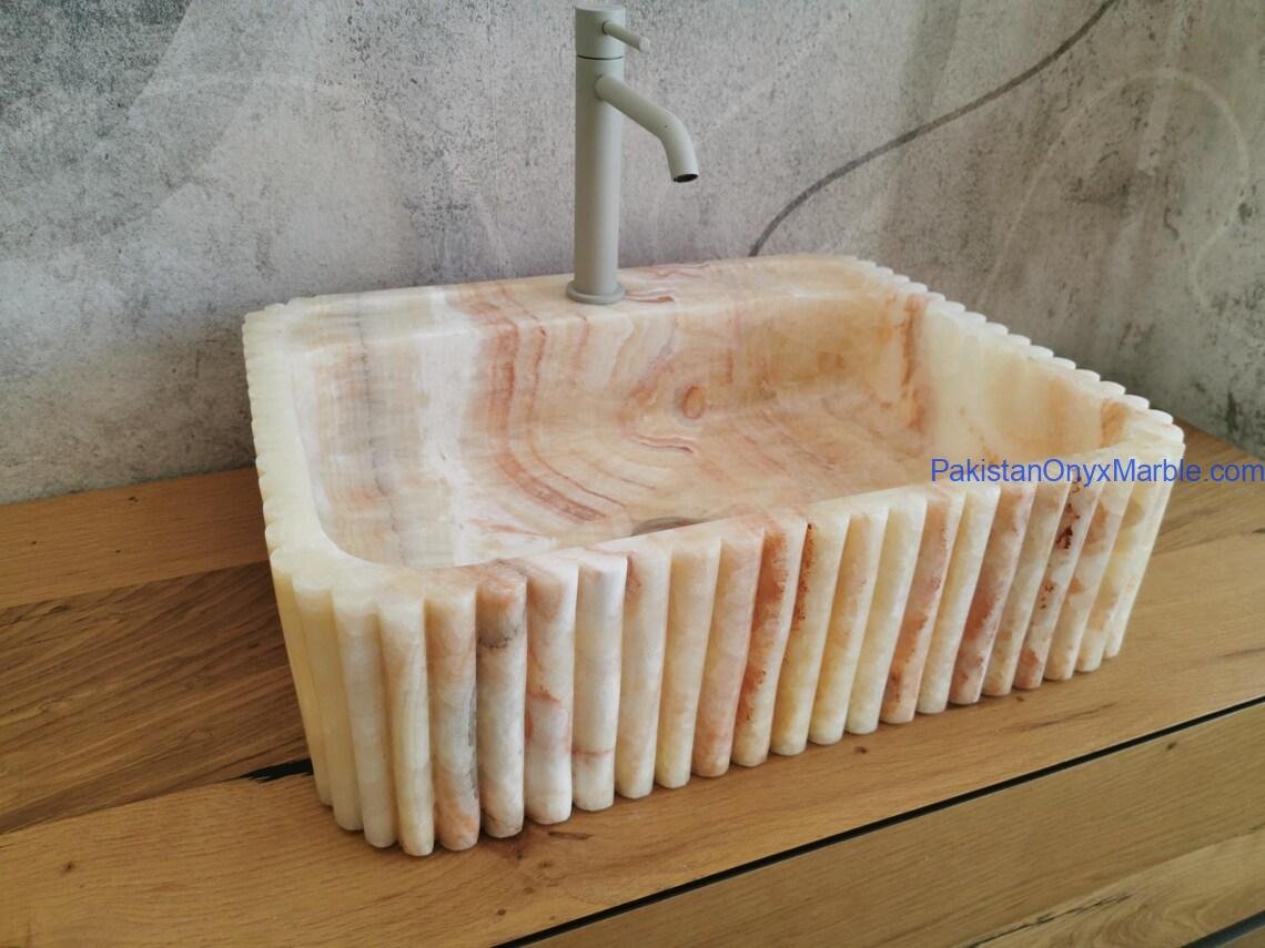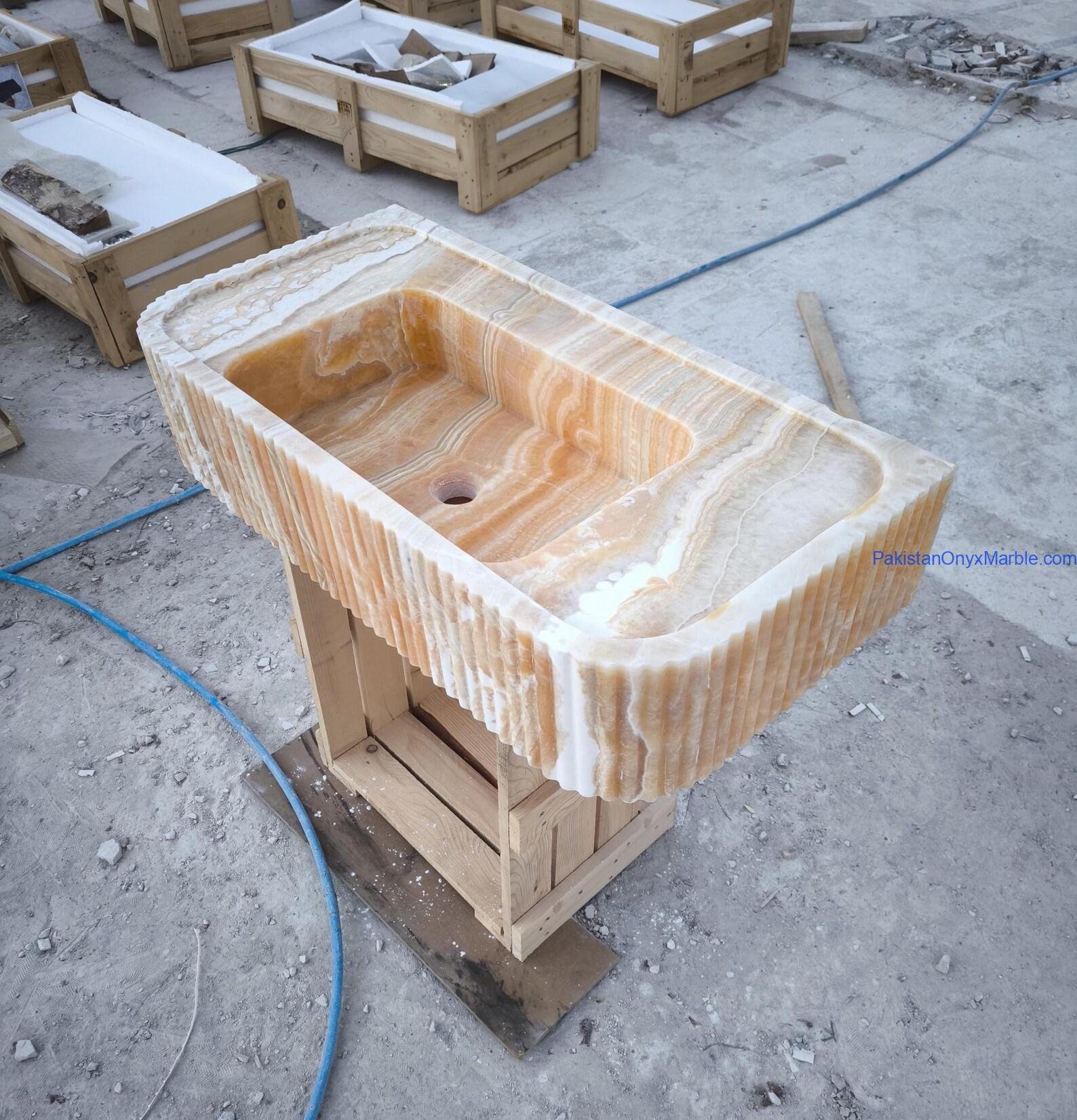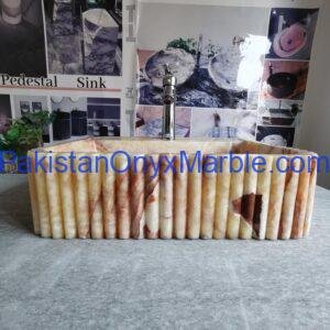 Pakistan Onyx Marble offers rectangle fluted sinks with customizable groove patterns:
