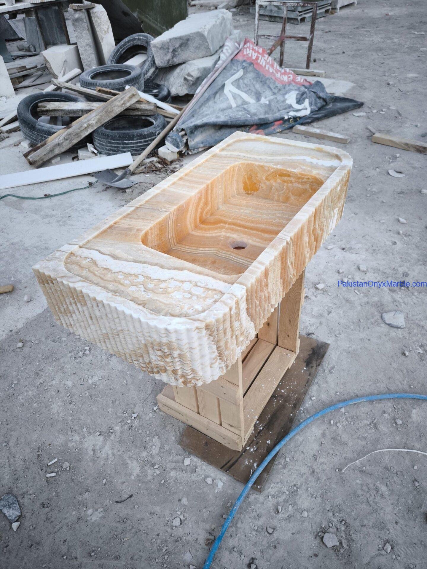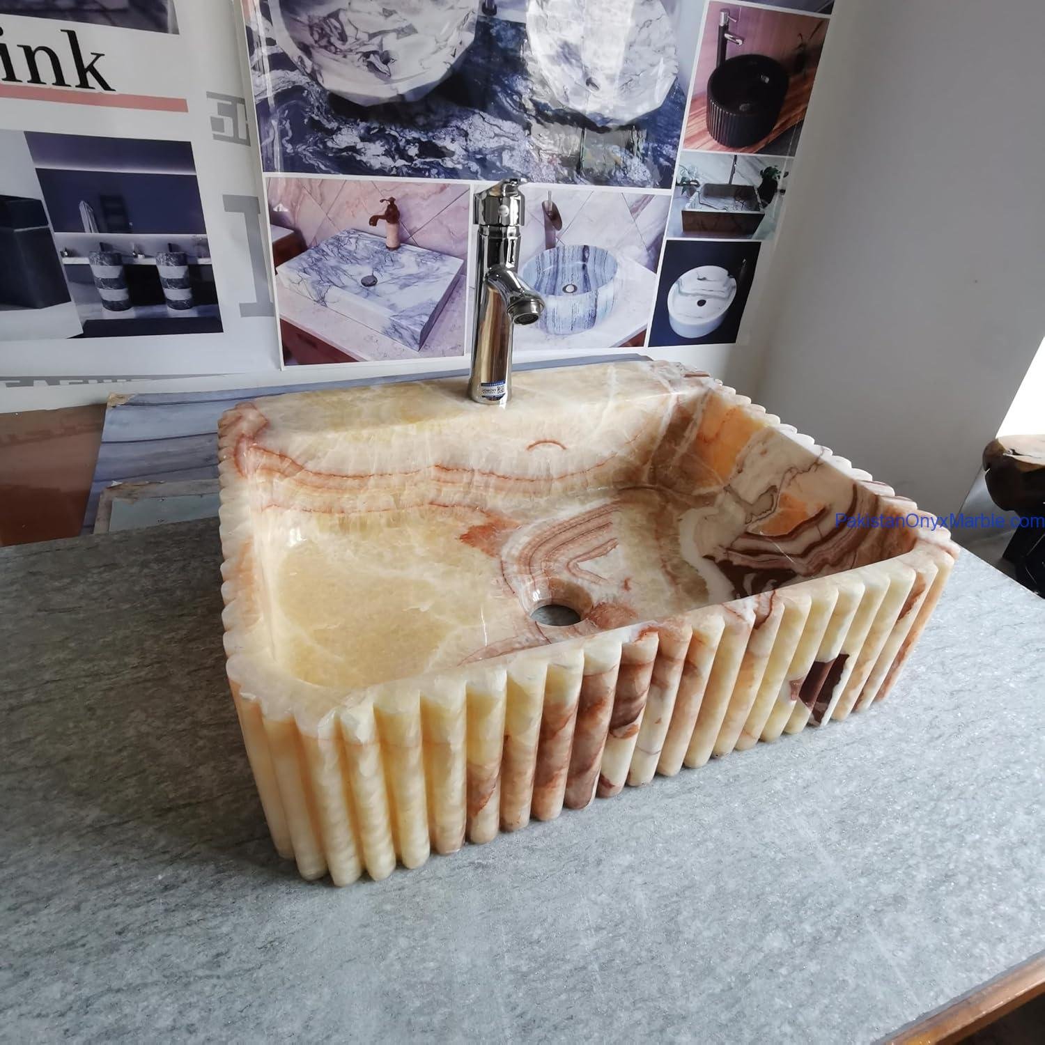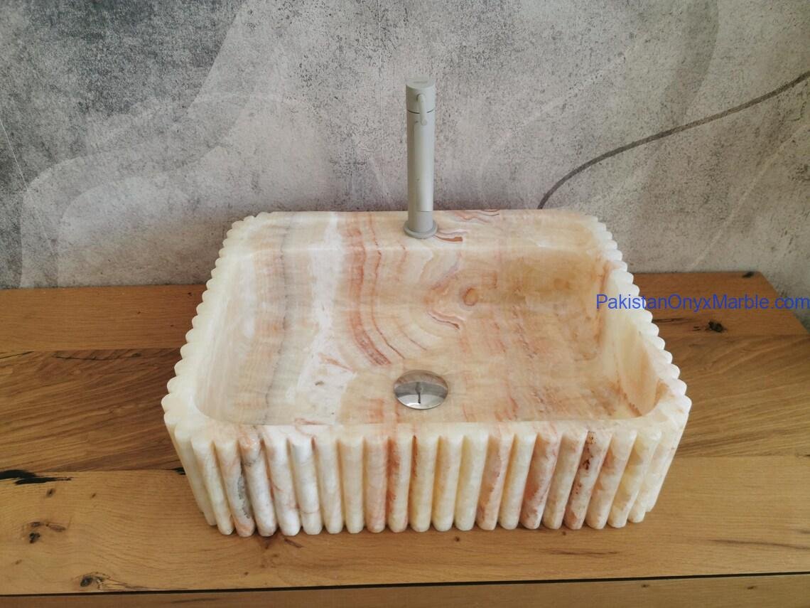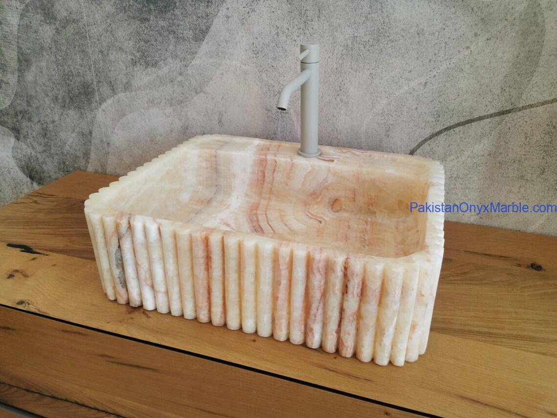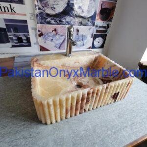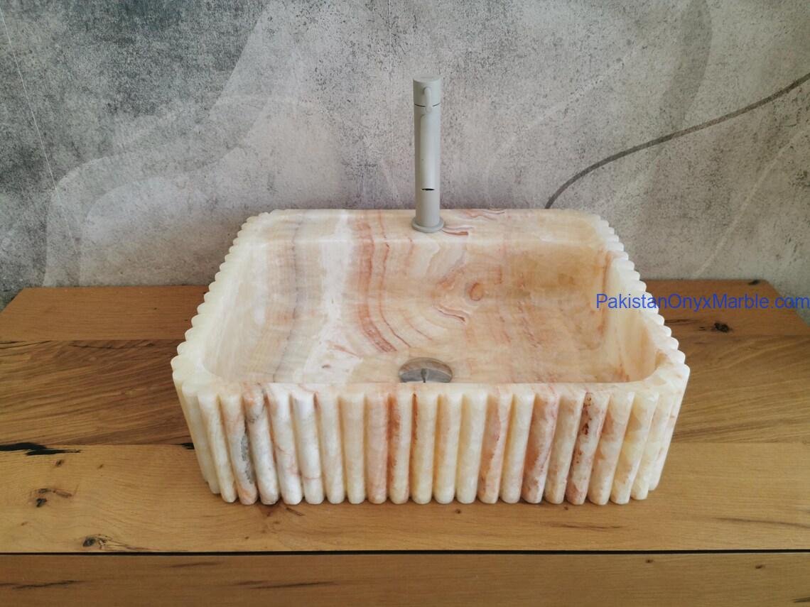 Pakistan Onyx Marble offers rectangle fluted sinks with customizable groove patterns: