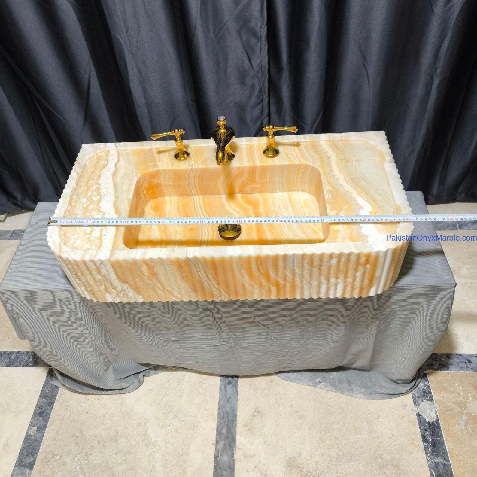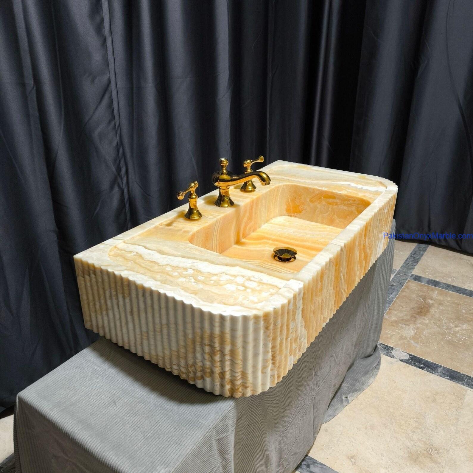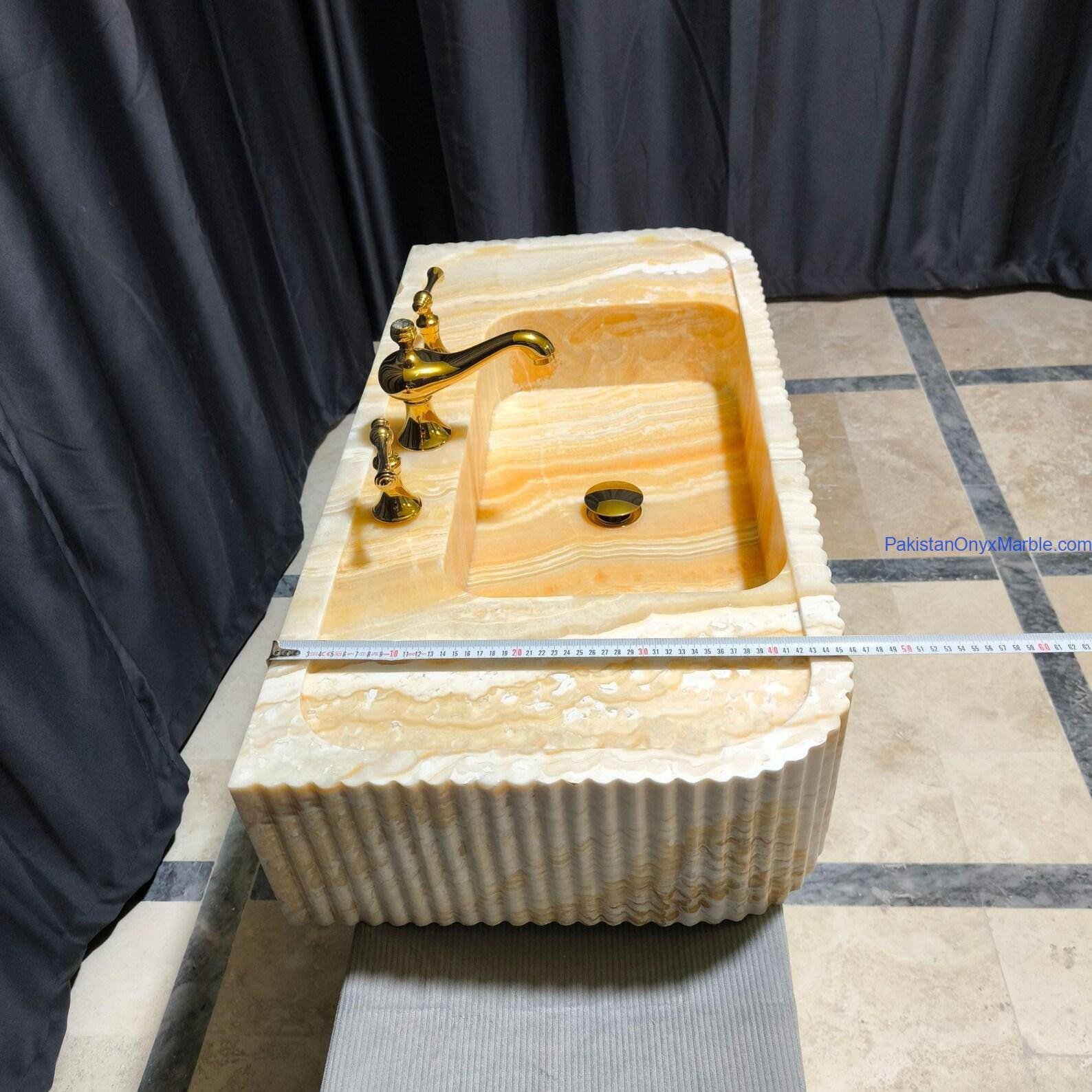 Pakistan Onyx Marble offers rectangle wall mounted fluted sinks with customizable groove patterns: