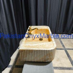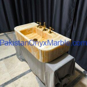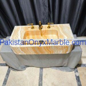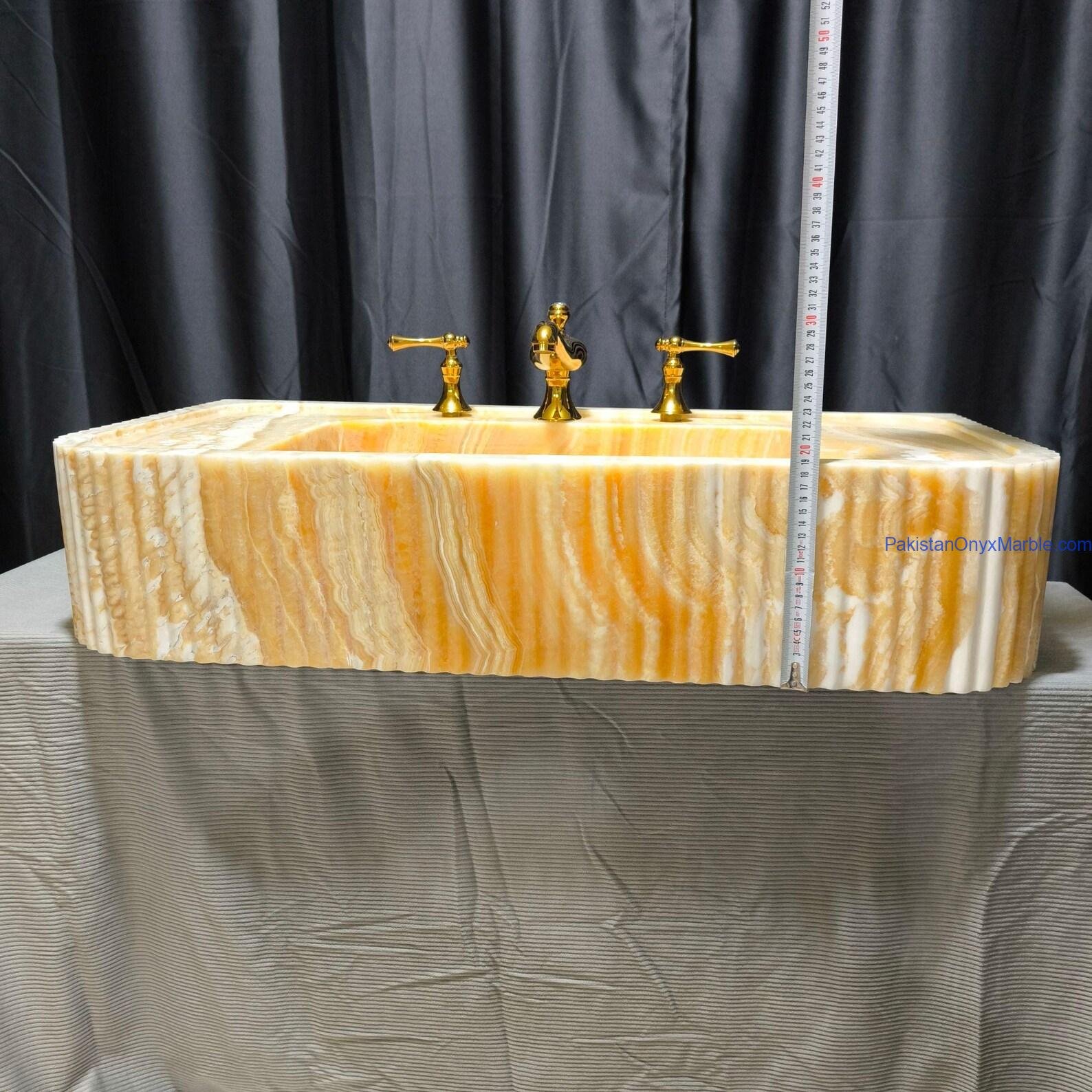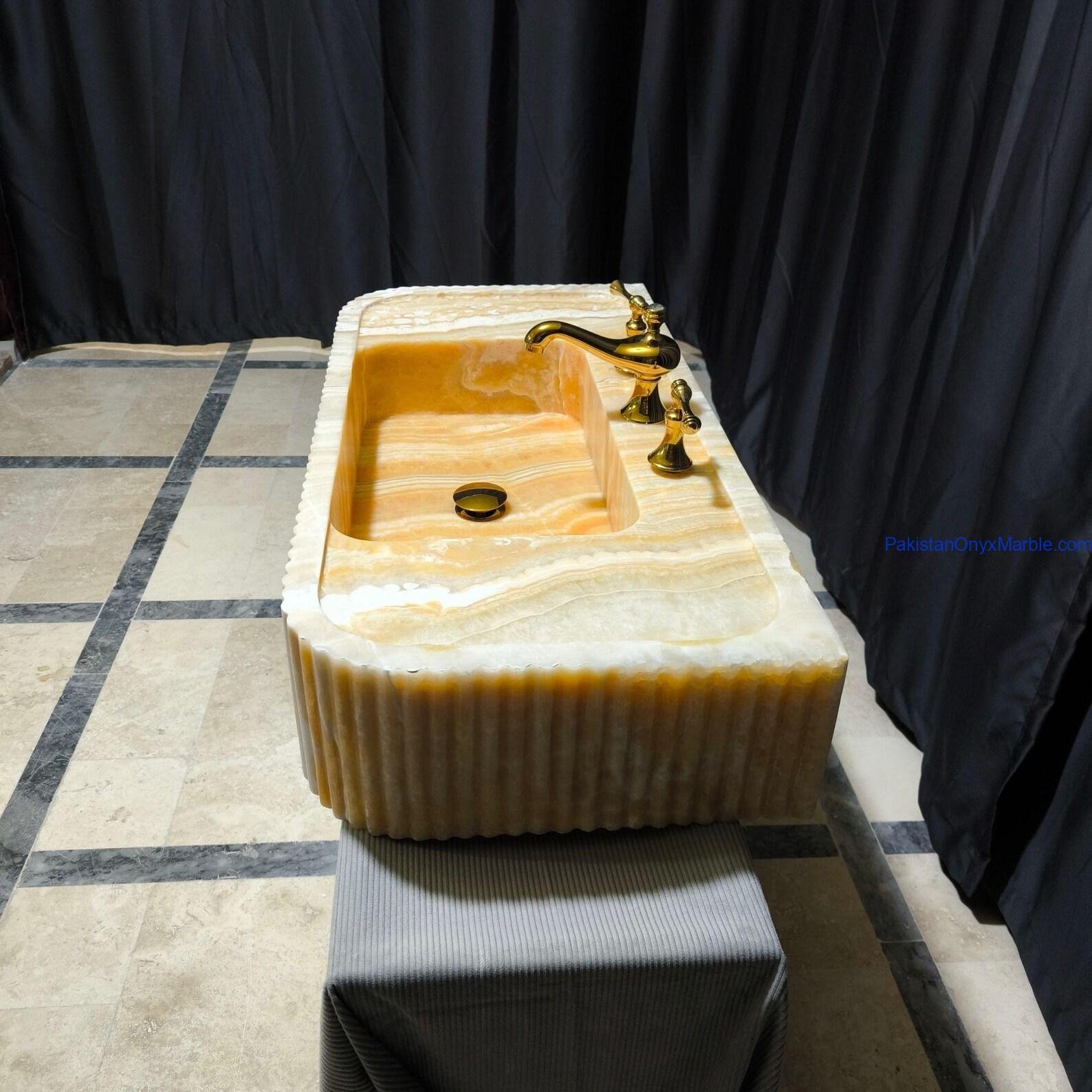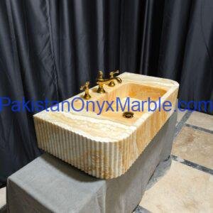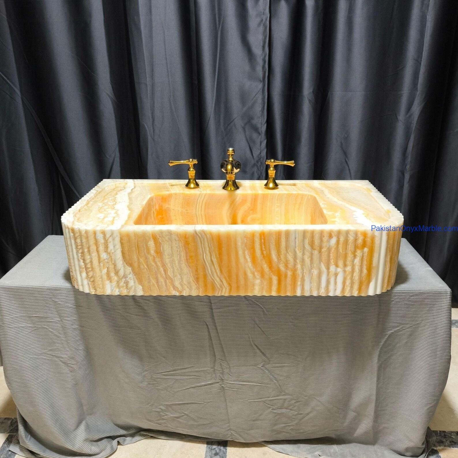 Pakistan Onyx Marble offers rectangle wall mounted fluted sinks with customizable groove patterns: