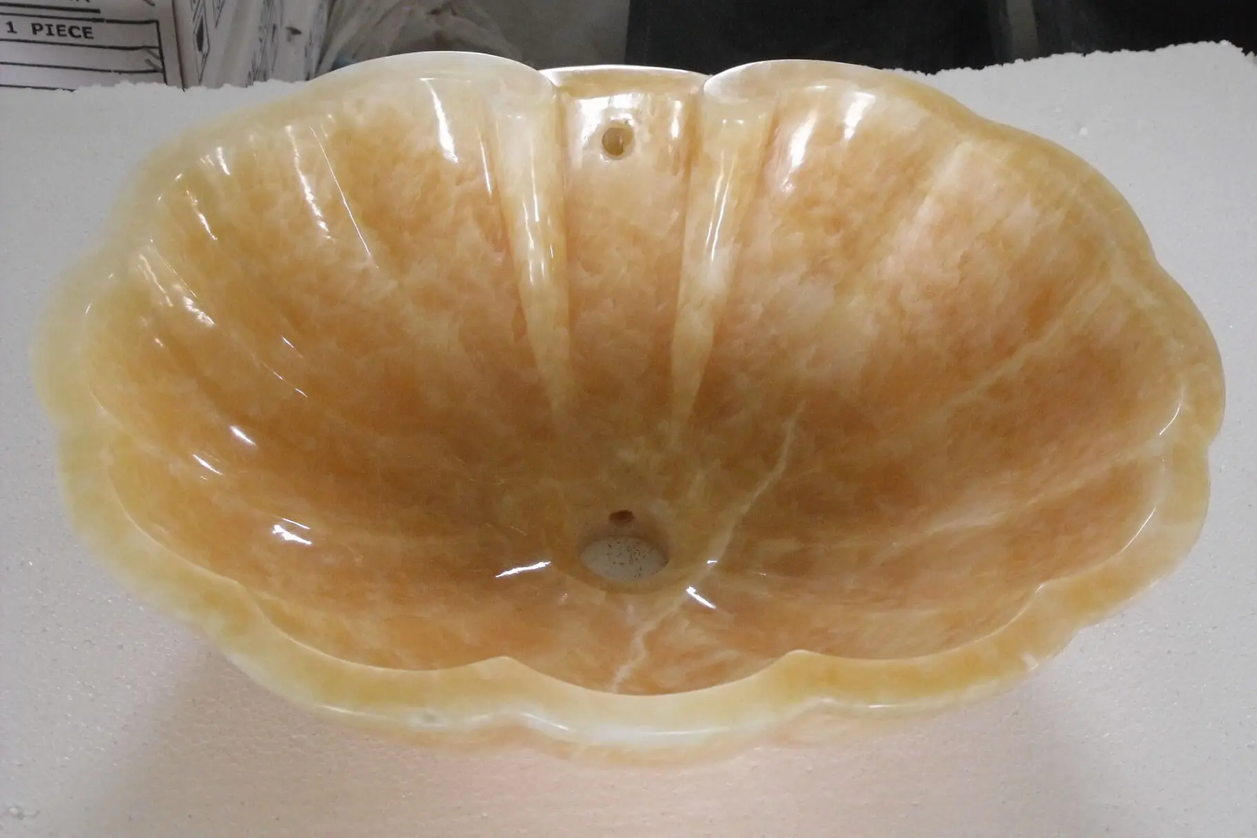 Orange Honey Onyx Shell Shaped Vessel Sinks | Wholesale Bathroom Basins Supplier Photo Gallery